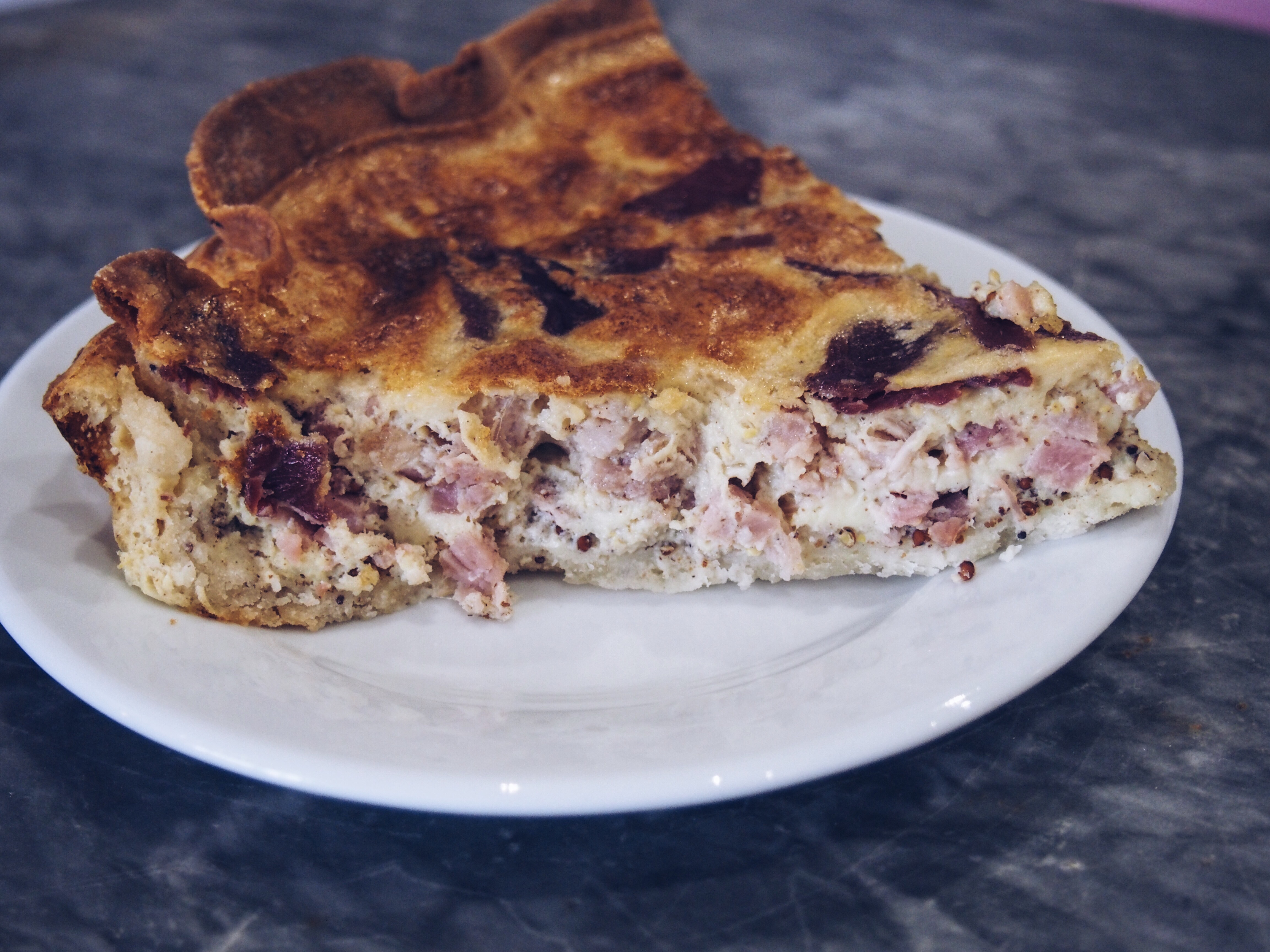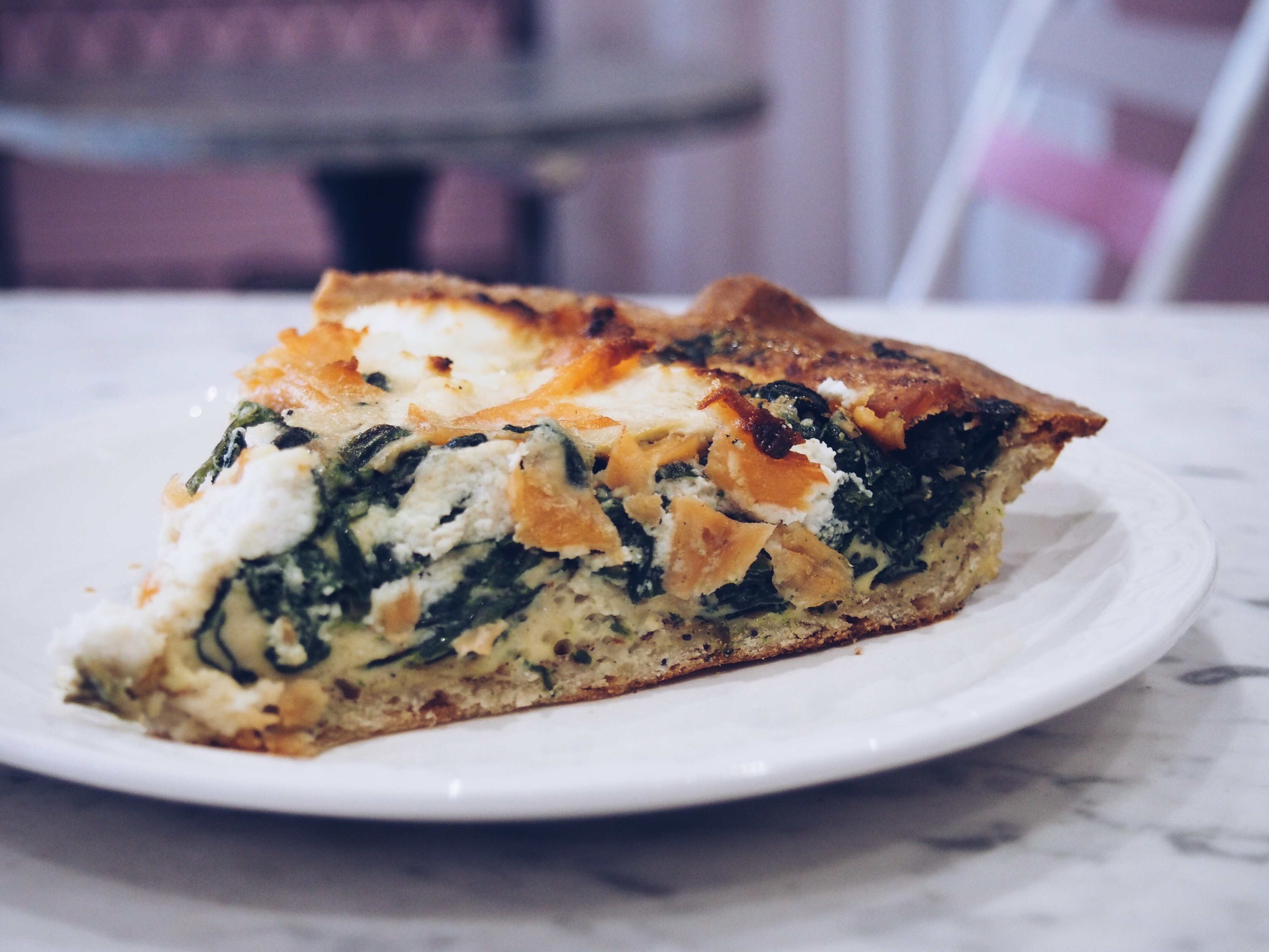 Je me suis rendue plusieurs fois chez La Reine des Tartes et j’ai donc pu goûter différentes associations et je l’ai ai TOUTES adoré : courgettes-brousse, épinard-saumon-ricotta, poireaux-conté, chocolat type mendiant, abricot-rhubarbe-coco …