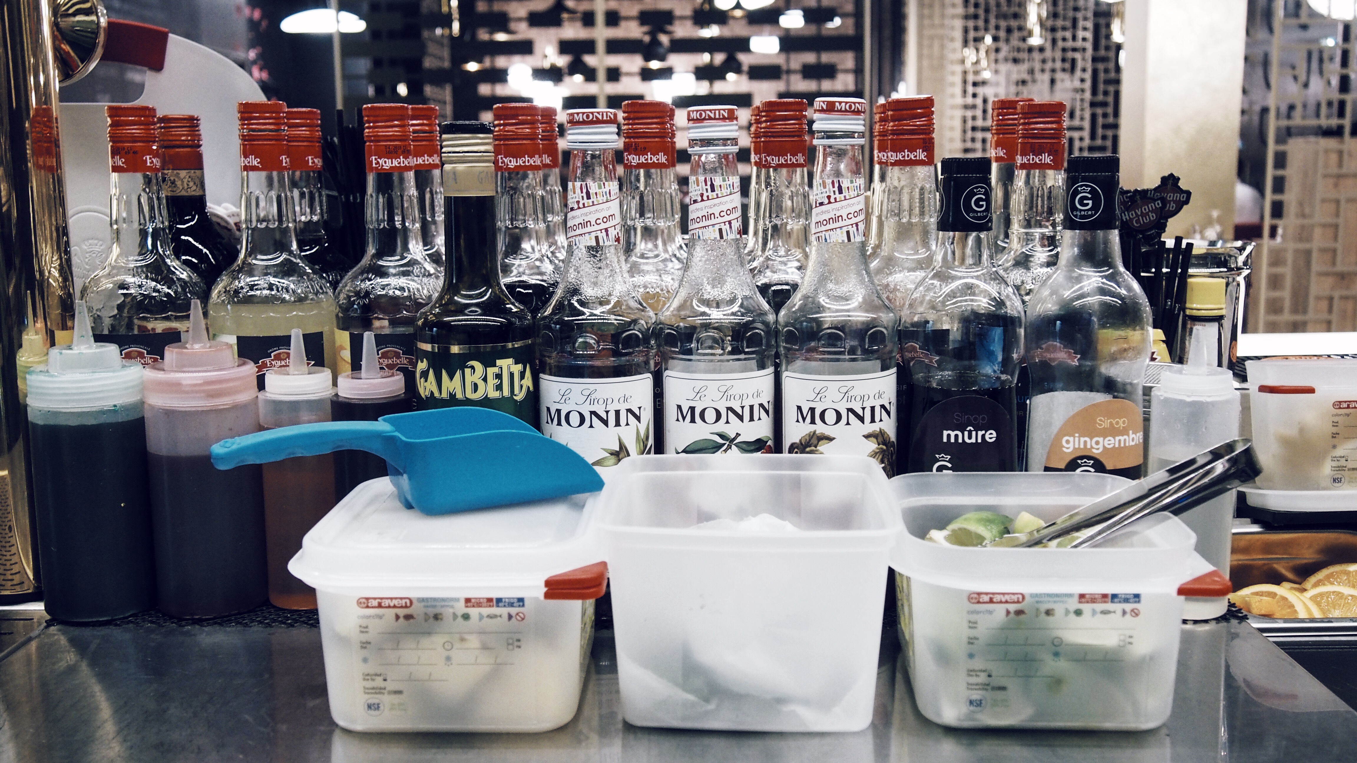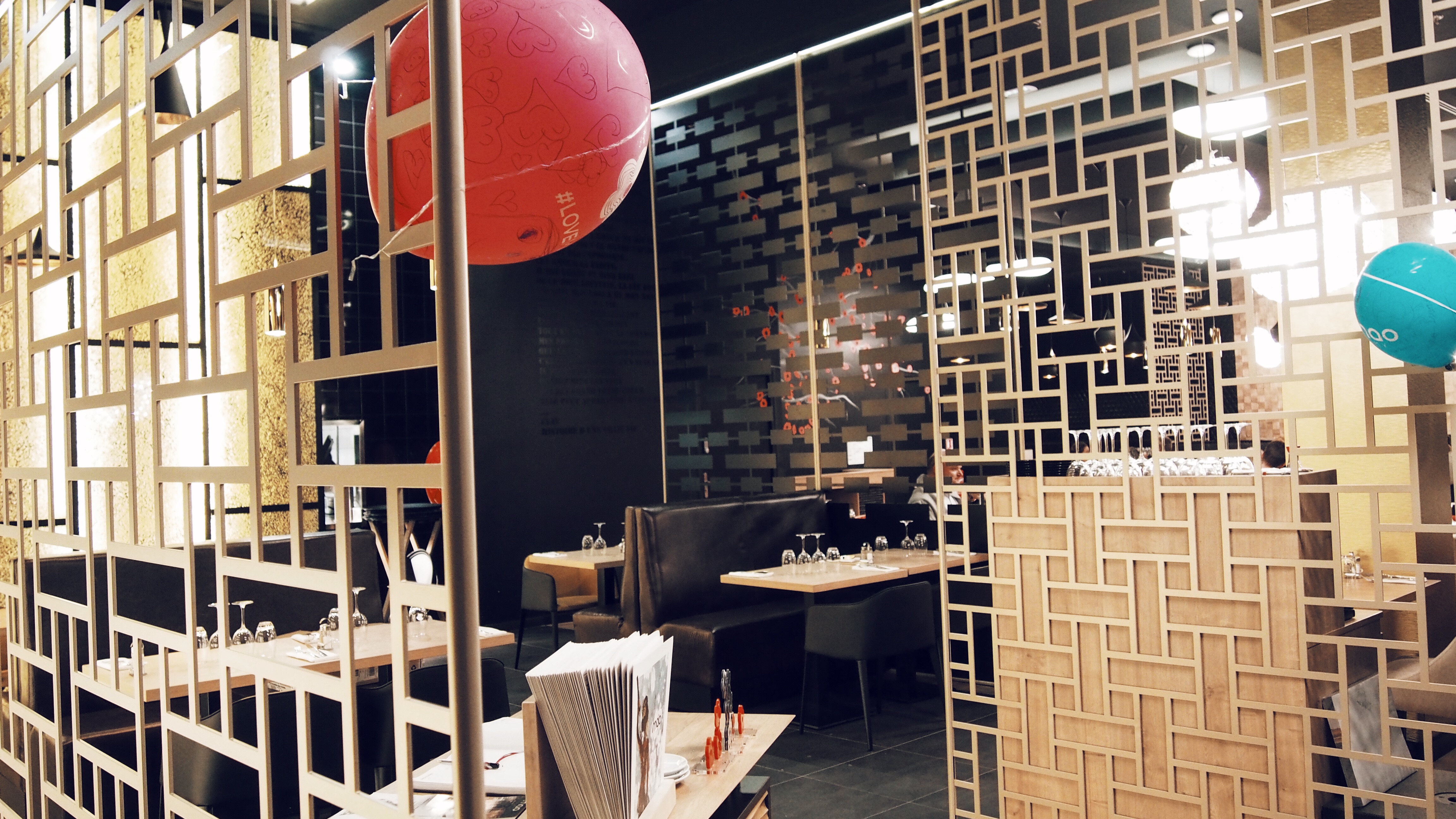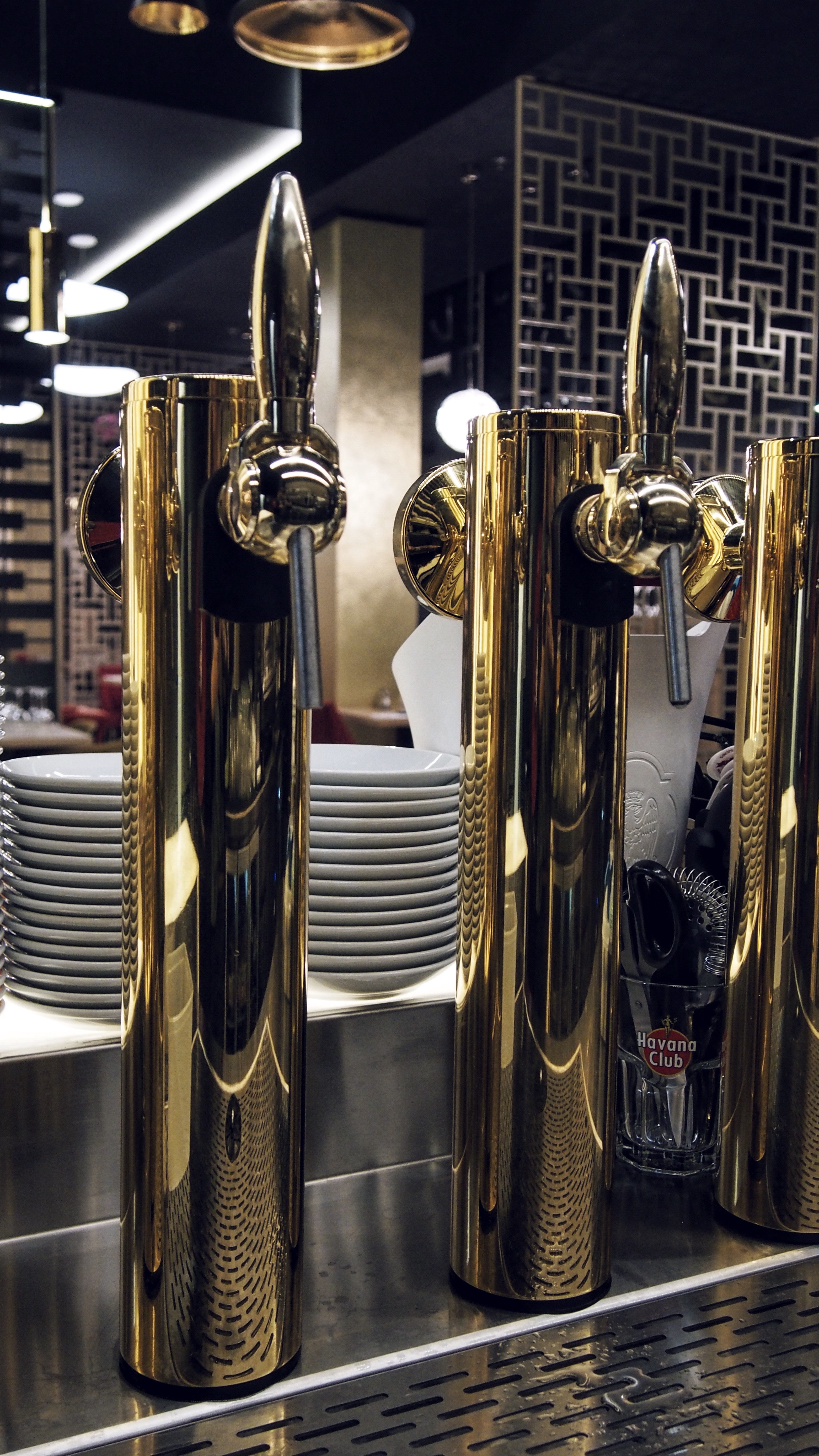 En rentrant dans le restaurant, j’ai été instantanément séduite par la décoration. Un énorme coup de coeur pour le bar en albâtre ! Illuminé, sa texture m’a fait penser à la surface de la lune, tout simplement sublime. Et le mur en feuilles d’or apporte également une touche de luxe tout en raffinement et crée également une atmosphère particulière.