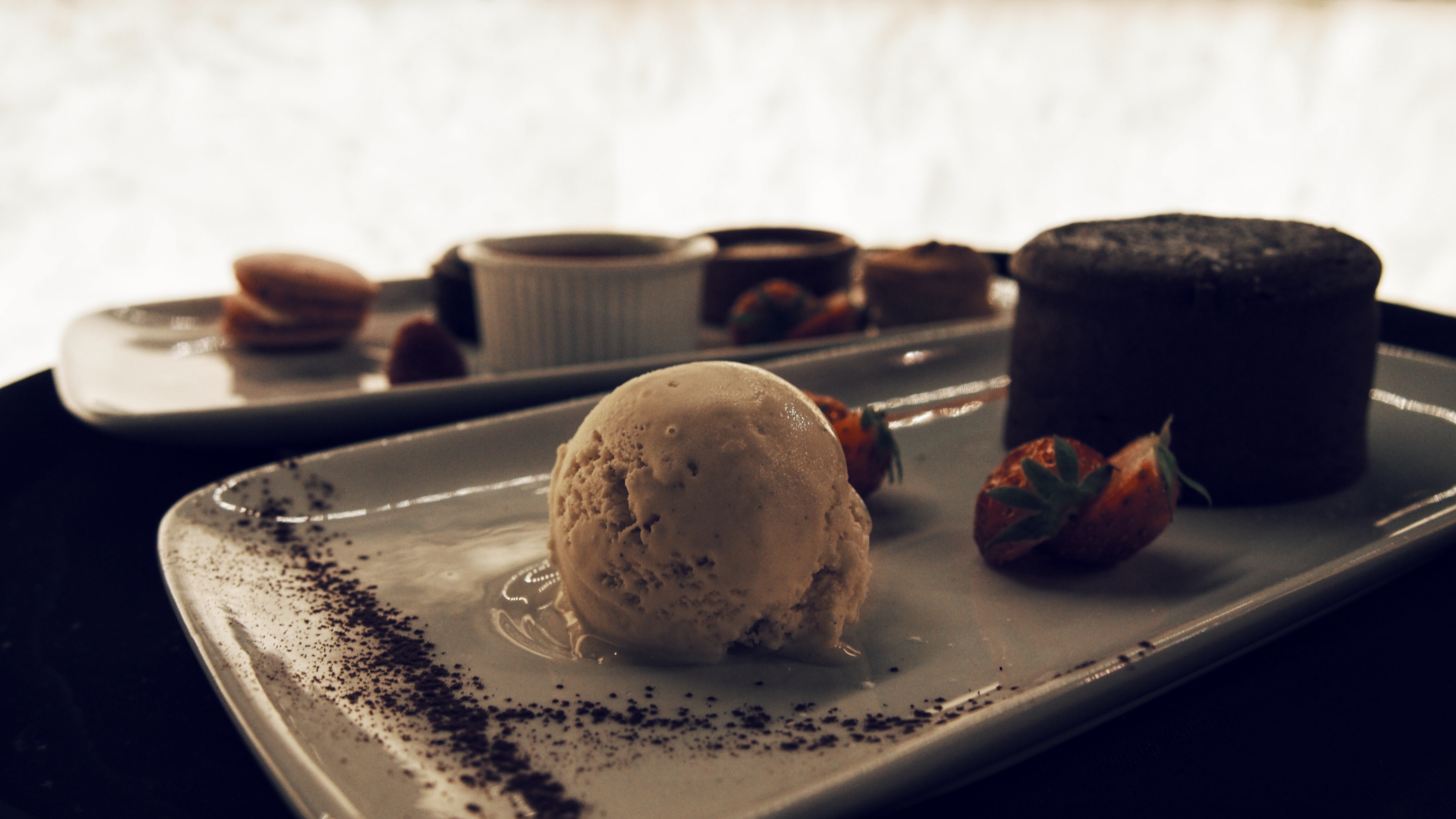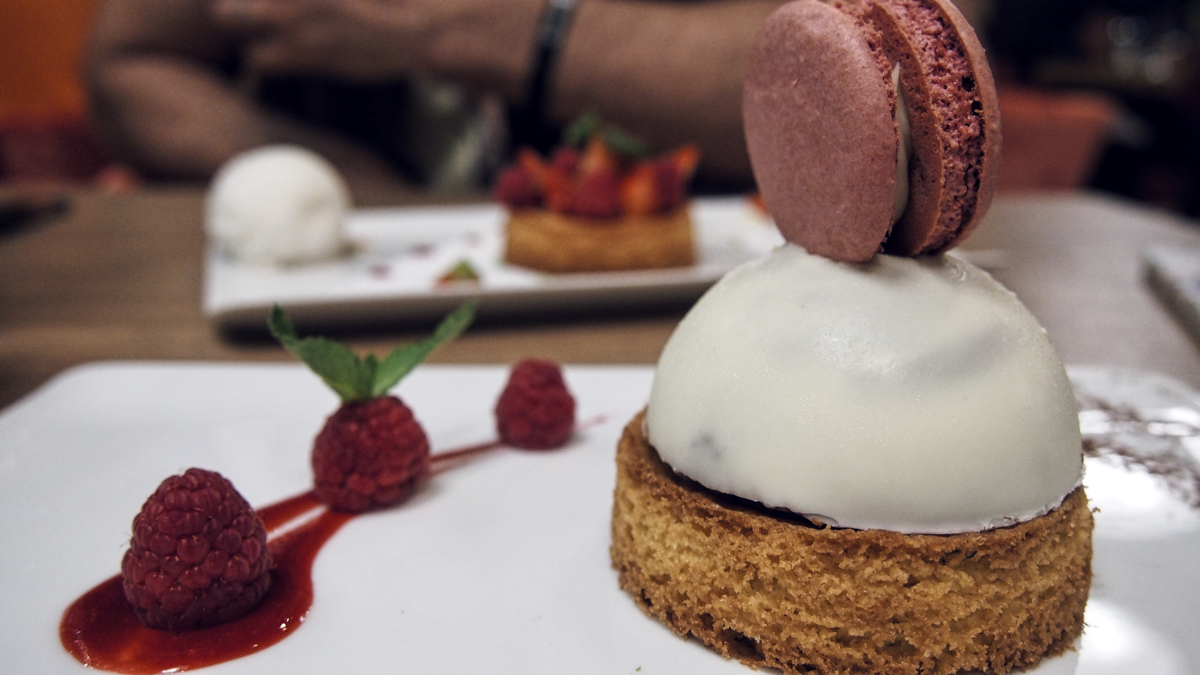 Les desserts (dôme glacé et tarte aux fraises du chef) étaient également à la hauteur de nos attentes. Hyper esthétiques et bien entendu succulents !