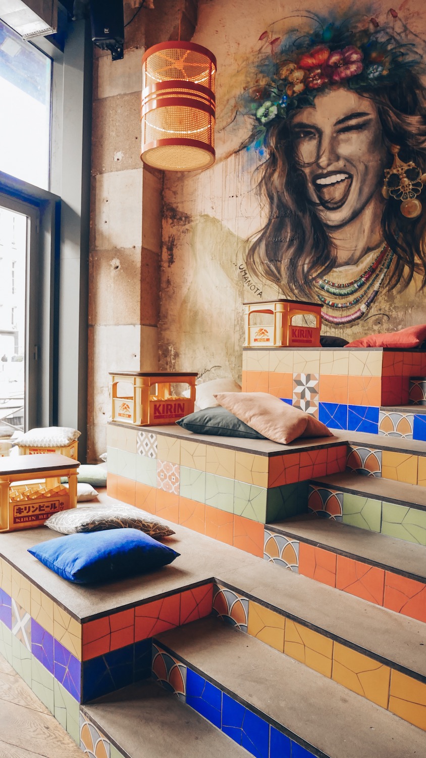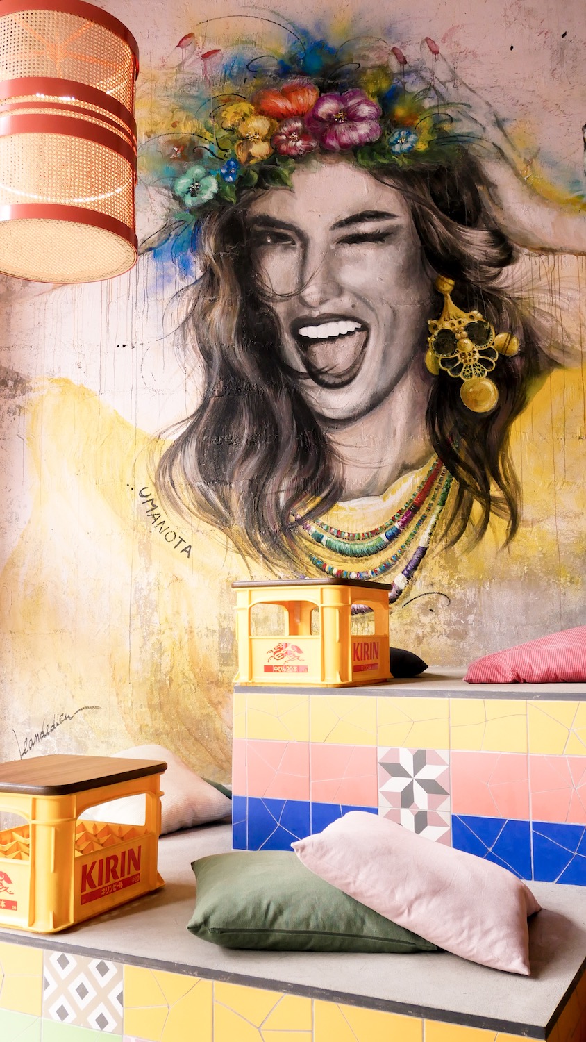 Le graff d’Alessandra Ambrosio réalisé par la street-artiste Elsa Jean de Dieu est vraiment incroyable et l’escalier aux carreaux de faïence est canon !