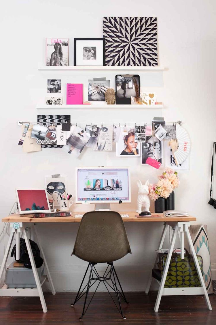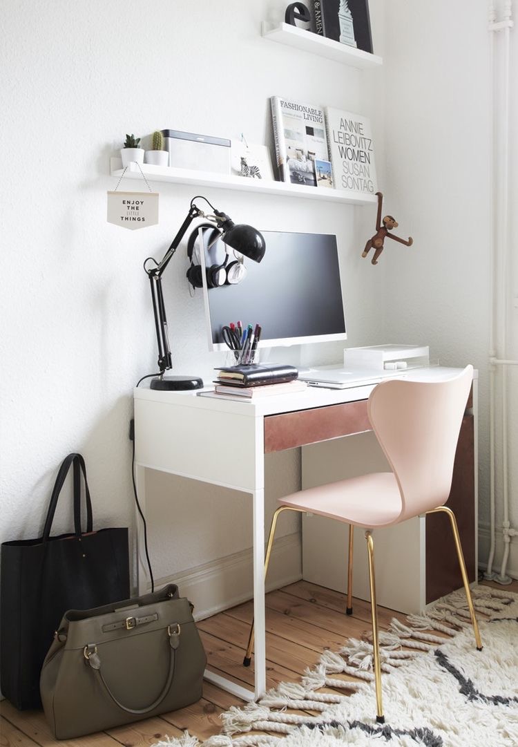 Que cela soit dans le salon ou la chambre, c’est toujours sympa de s’organiser un petit coin fonctionnel et charmant qui motivera pour travailler.