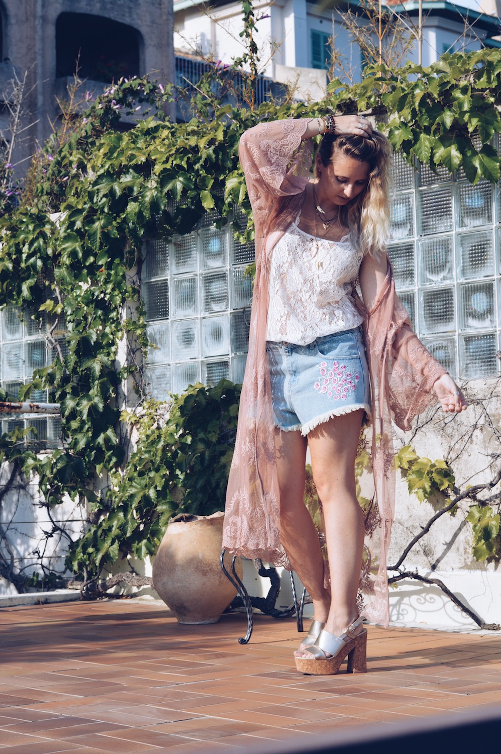 Short Primark / Kimono New Look* / Top Tati* / Chaussures Vanessa Wu* (en SOLDES)