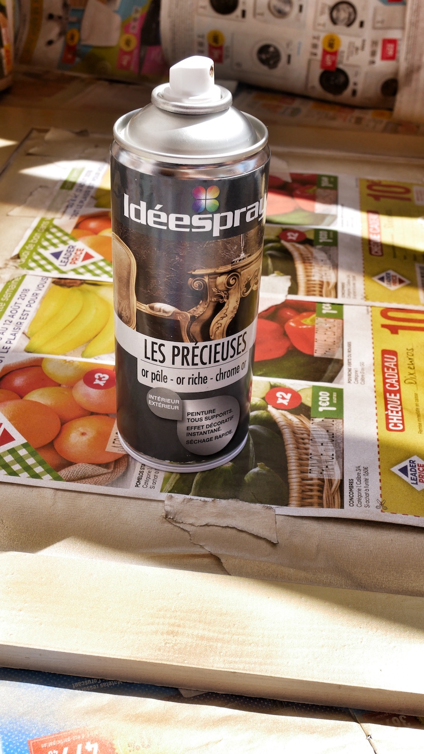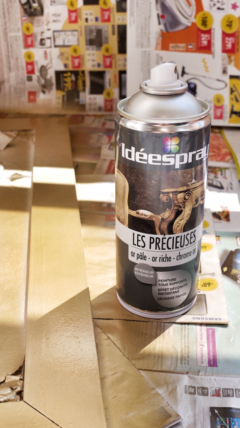J’ai trouvé une bombe de peinture or chez Babou à moins de 10€. Hyper pratique d’utilisation, elle m’a permis de transformer ce miroir facilement. Sa teinte est parfaite, je suis vraiment contente du résultat.