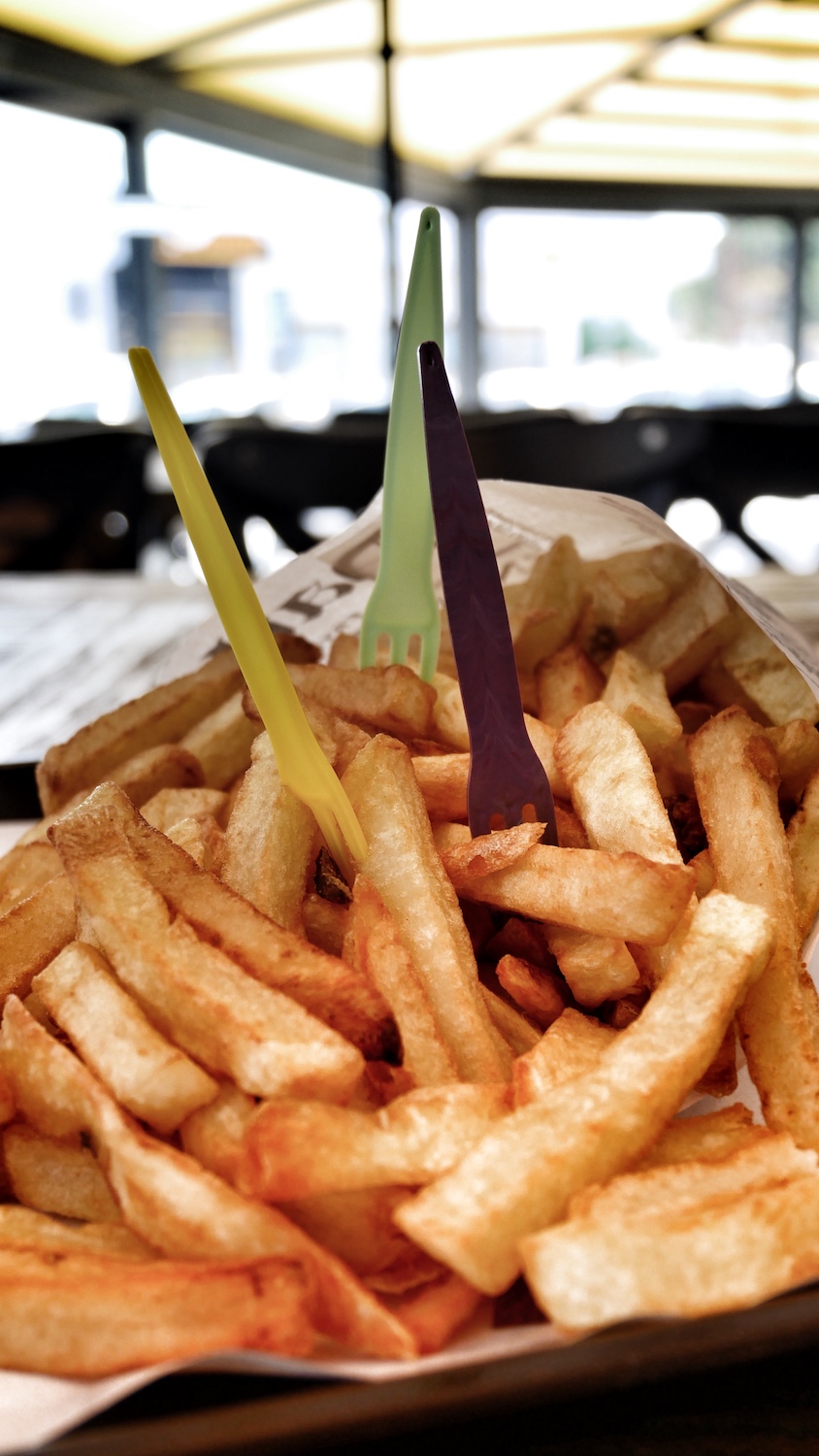 Des frites fraiches, maisons, à la double cuisson pour un résultat tout simplement succulent ! Croustillantes mais fondantes à l’intérieur, au bon gout de pomme de terre, nul besoin d’assaisonnement ou de sauces, elles se suffisent à elle-même.