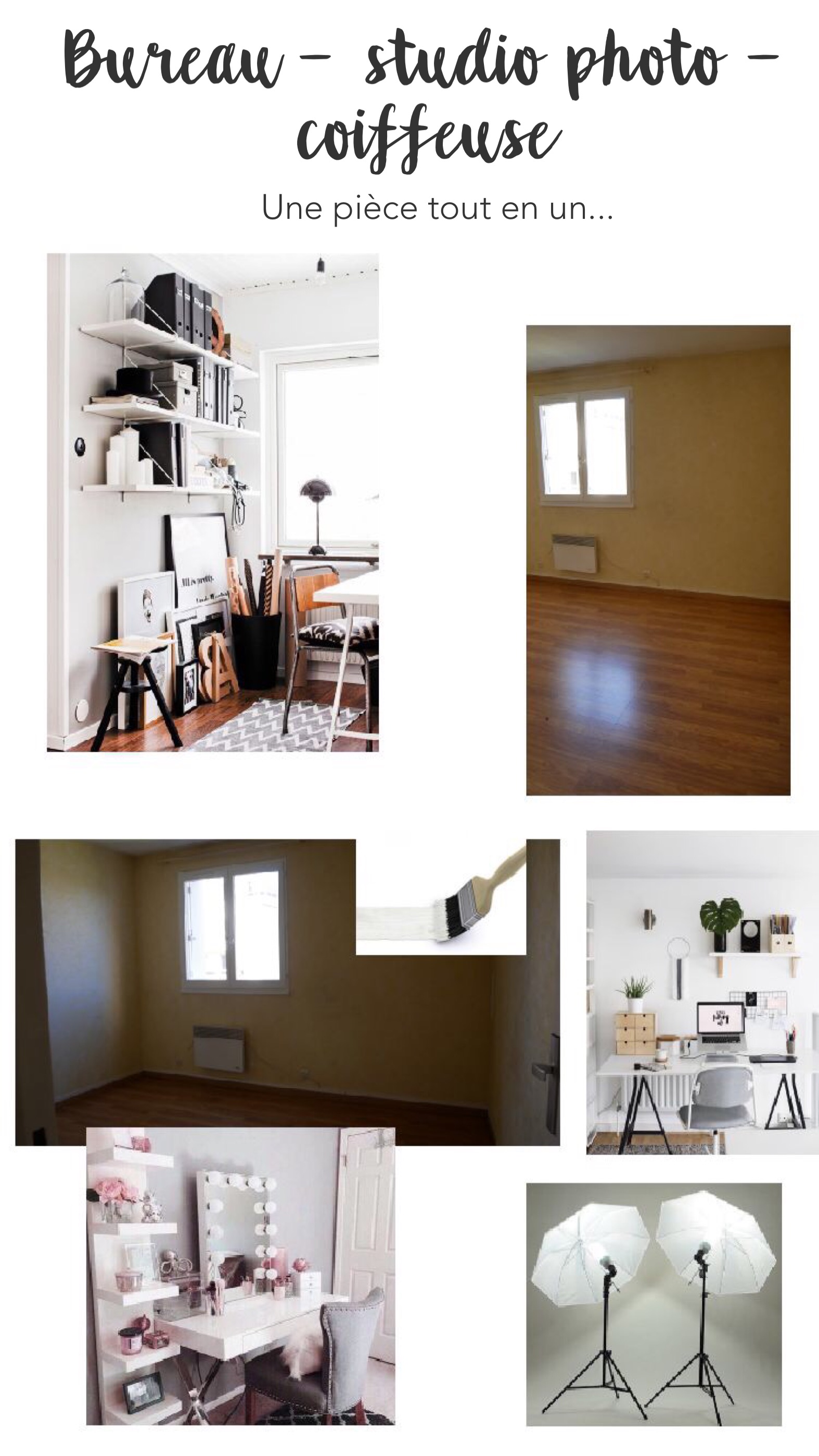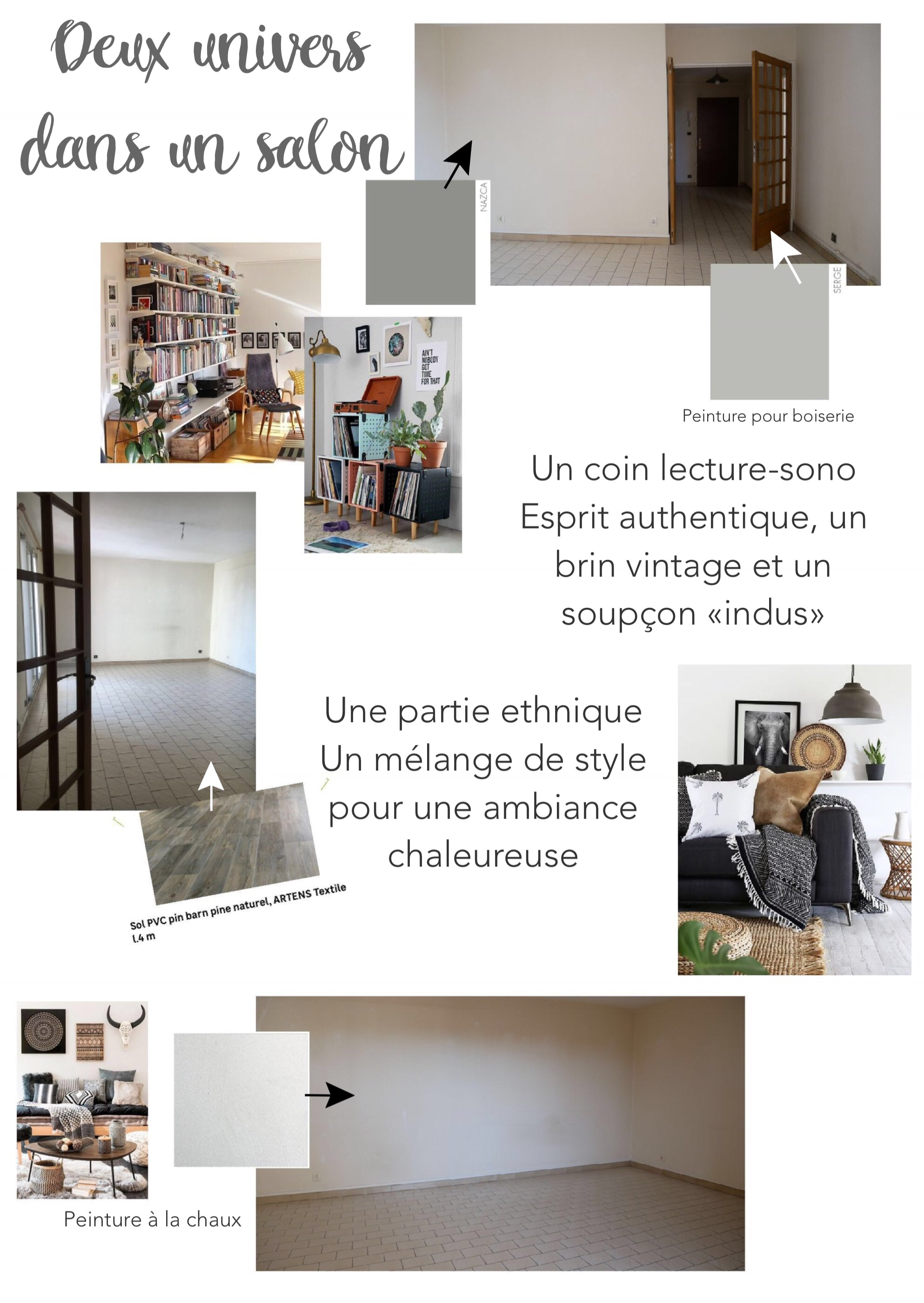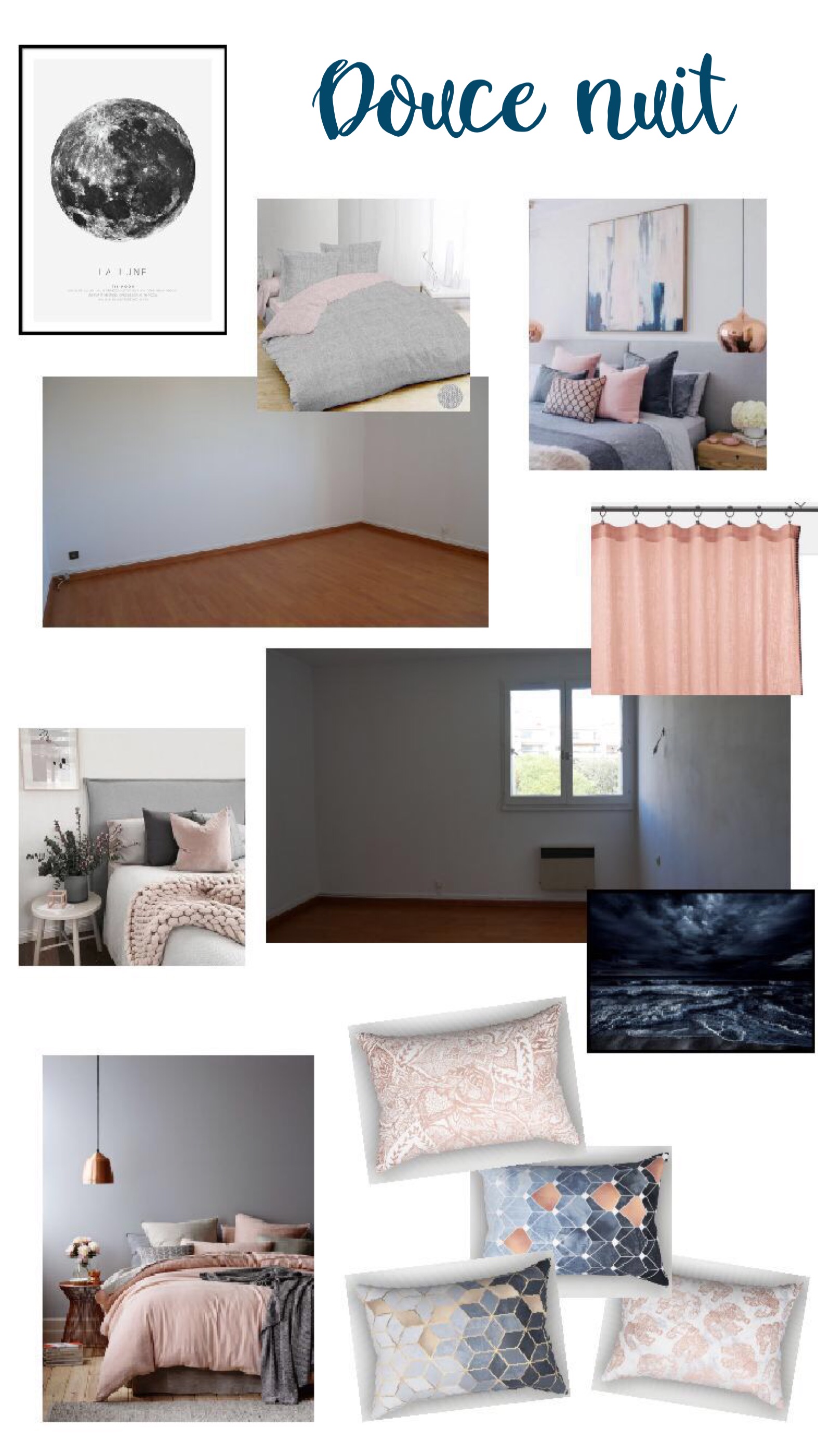 Avant toute chose, je me suis fait un mood board, j’ai cherché un peu partout des éléments de décoration qui me plaisaient et j’ai réuni le tout.