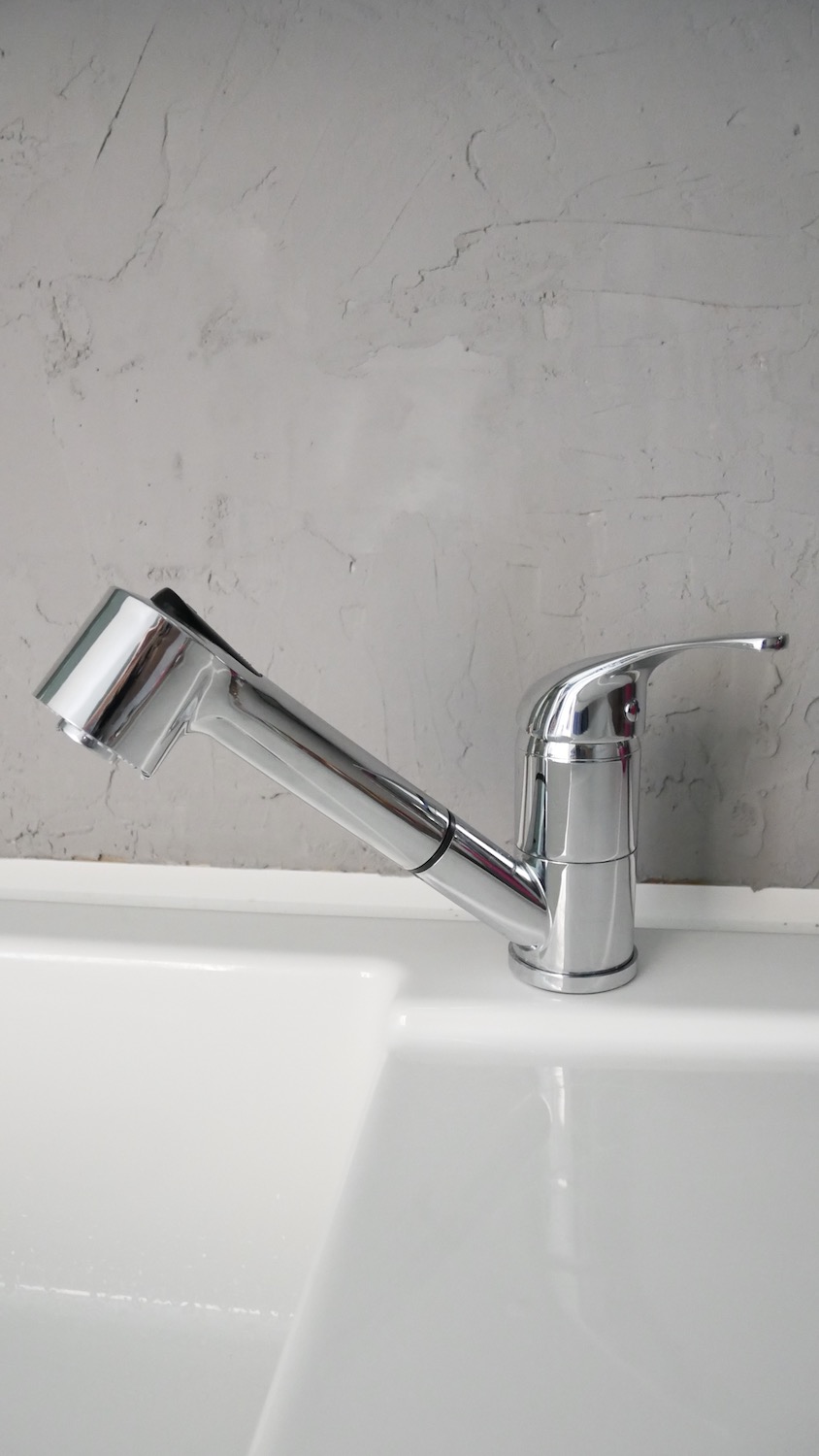 Une chose qu’il me tenait à coeur d’avoir neuf, c’est l’évier. J’en souhaitais un blanc et plus grand que celui déjà présent.