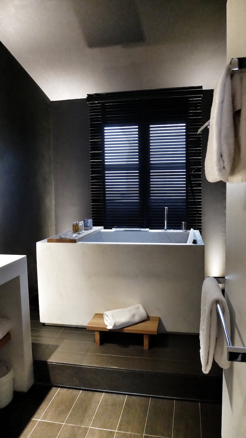 La salle de bains quand à elle, était tout simplement incroyable ! Un baignoire taillée dans un bloc de marbre pour un pur moment de détente et une grande douche à l’italienne.