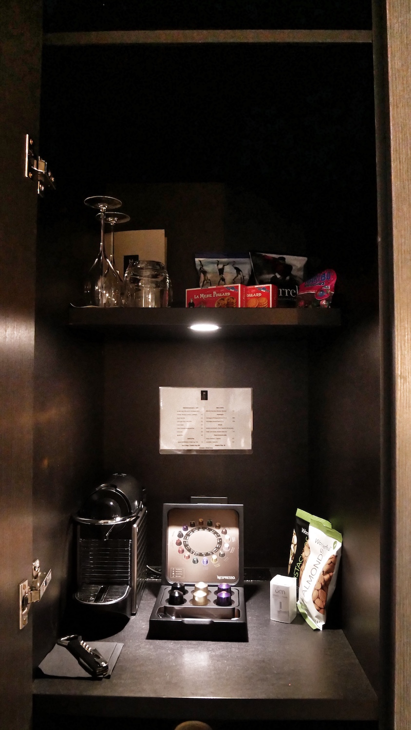 Un bar pour se poser installé sous la verrière ou au coin du feu en fonction de la saison accueille les clients tout au long de la journée. On peut y déguster une sélection de spiritueux, du thé ou combler un petit creux et même découvrir des produits Français, des années 50 ou 60, peu connus parfois, mais toujours de très haute qualité.