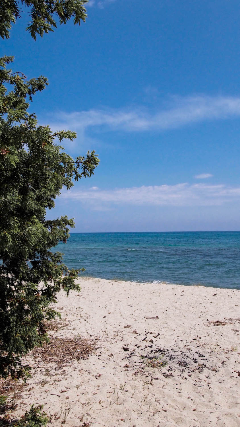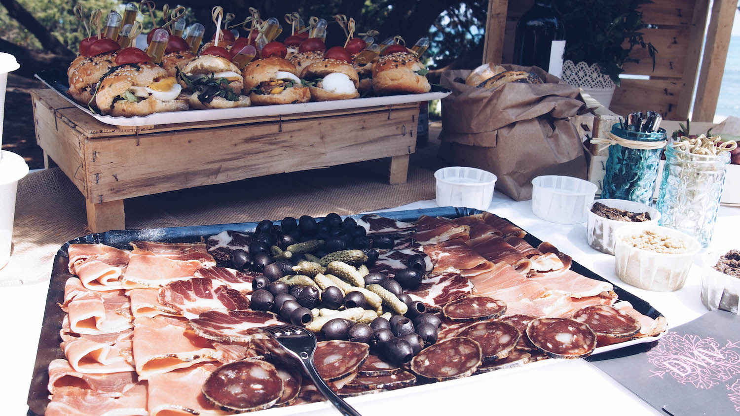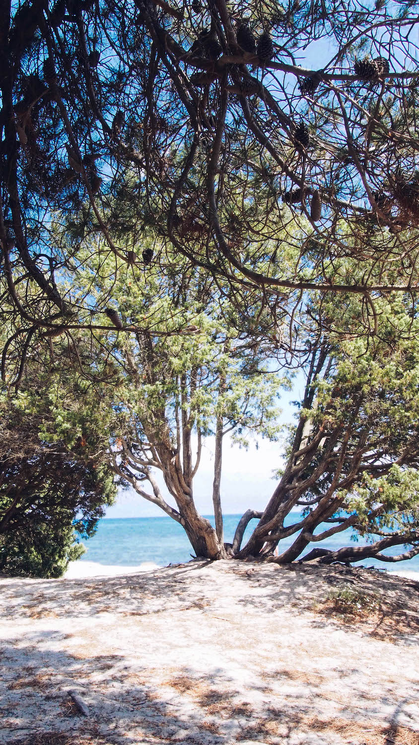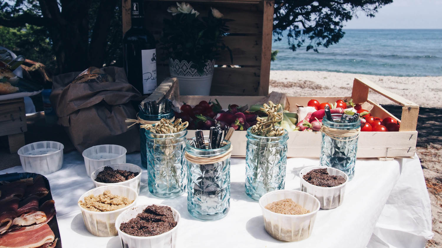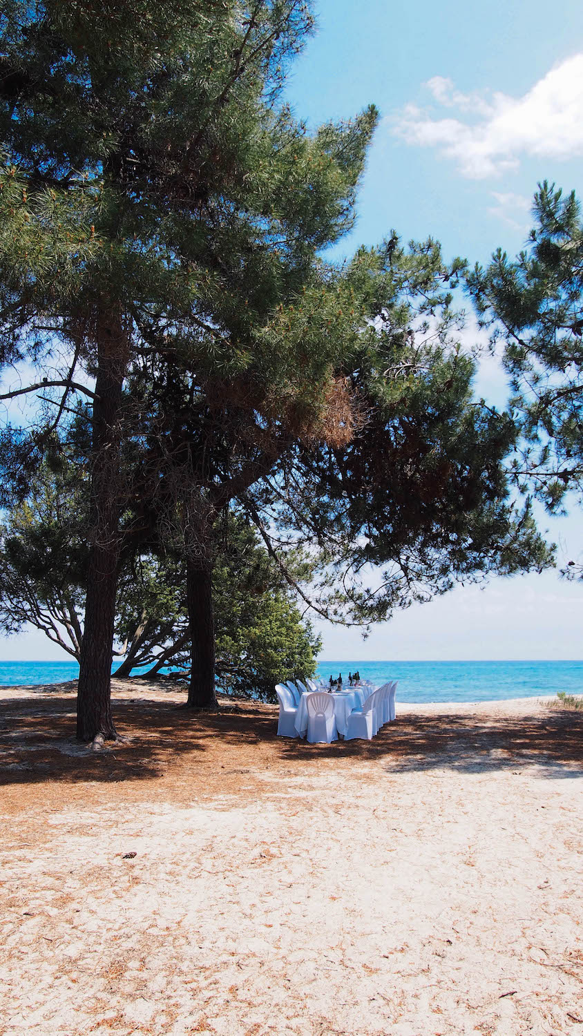 Cette balade nous a amené jusqu’au domaine de Pinia et sa magnifique plage. Là-bas une merveilleuse surprise nous attendait : une belle table dressée sous les arbres avec un spuntinu (casse-croûte corse) élaboré à partir de délicieux produits fermiers.
