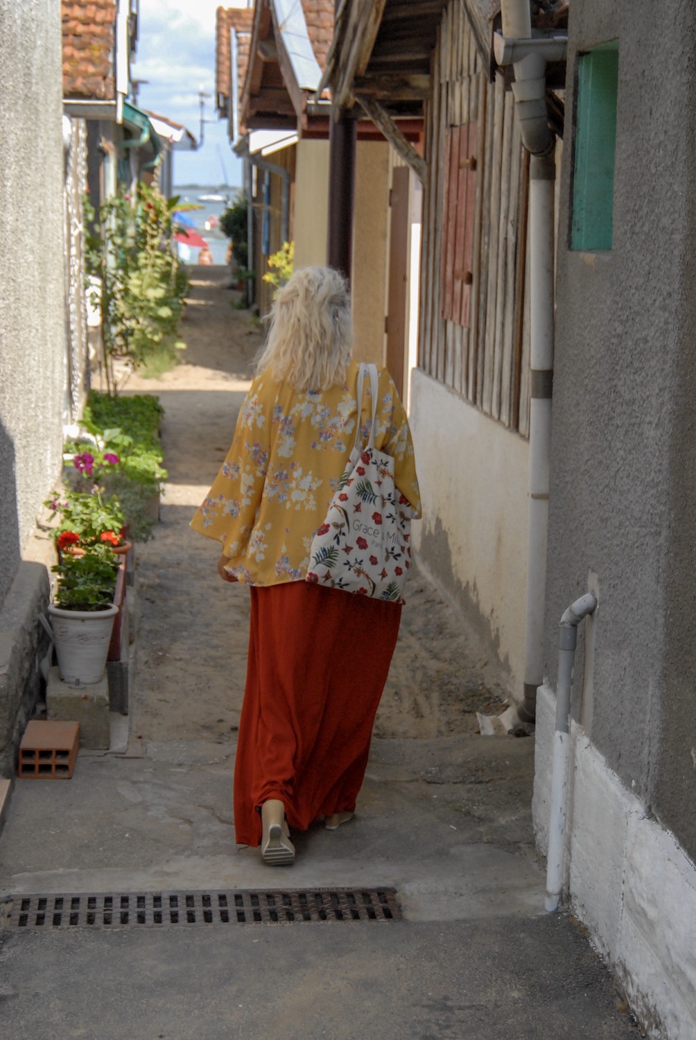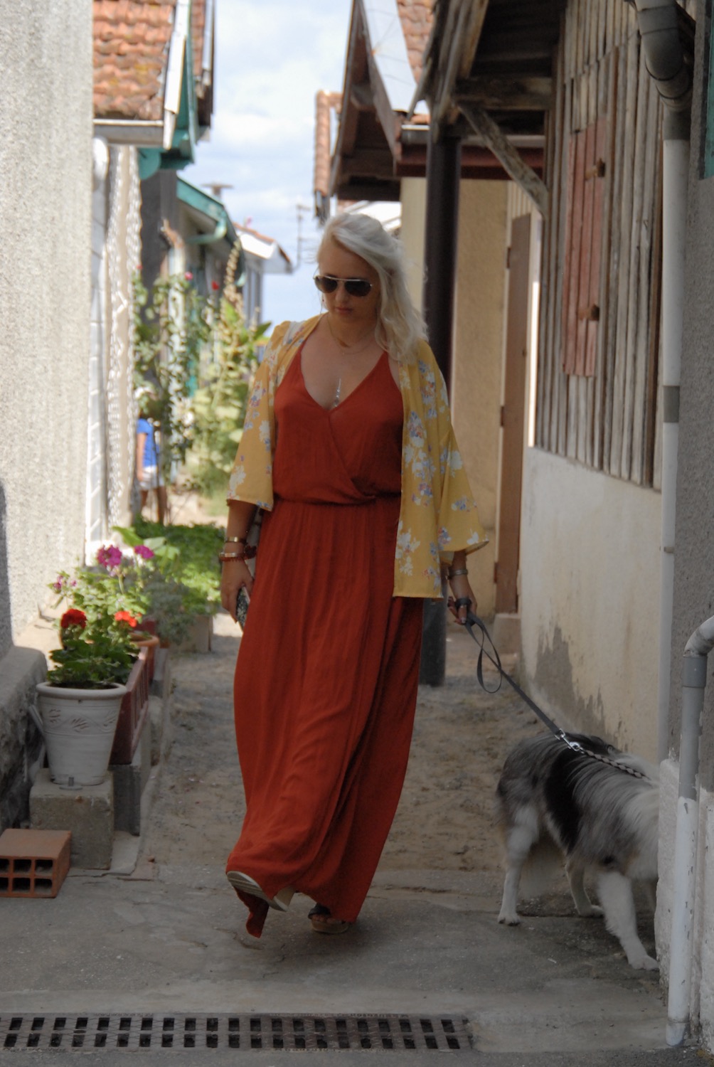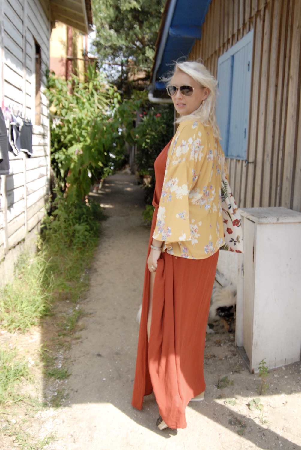 C’est donc dans les petites rues du village ostréicole de L’Herbe que nous avons immortalisé cette belle robe longue à dos ouvert Pimkie. Elle est malheureusement épuisée sur le site de l’enseigne, mais si cela vous dit je pourrais vous faire une petite sélection de modèles ressemblants.