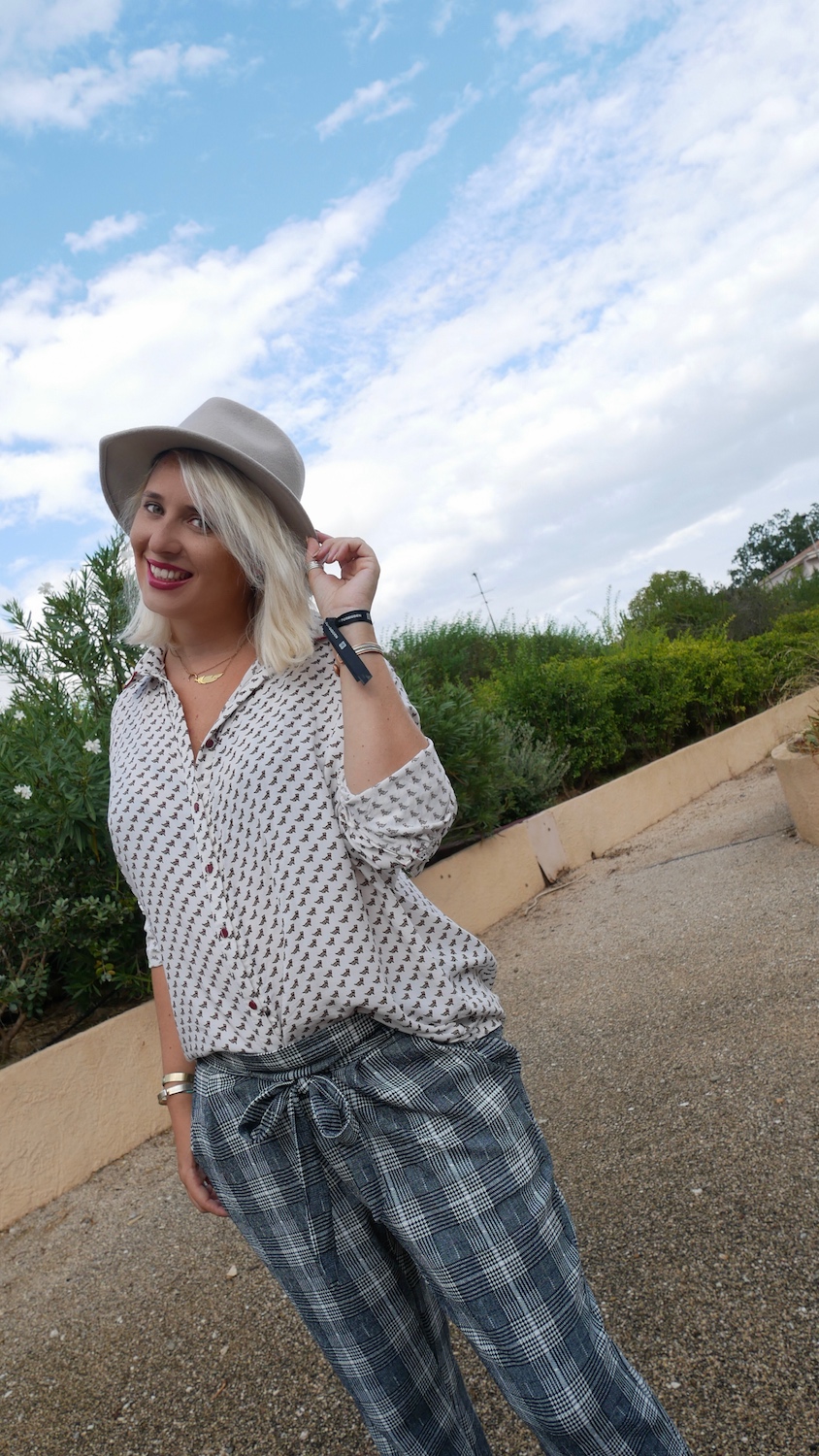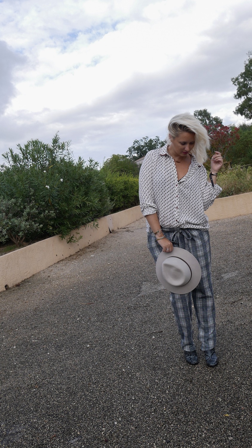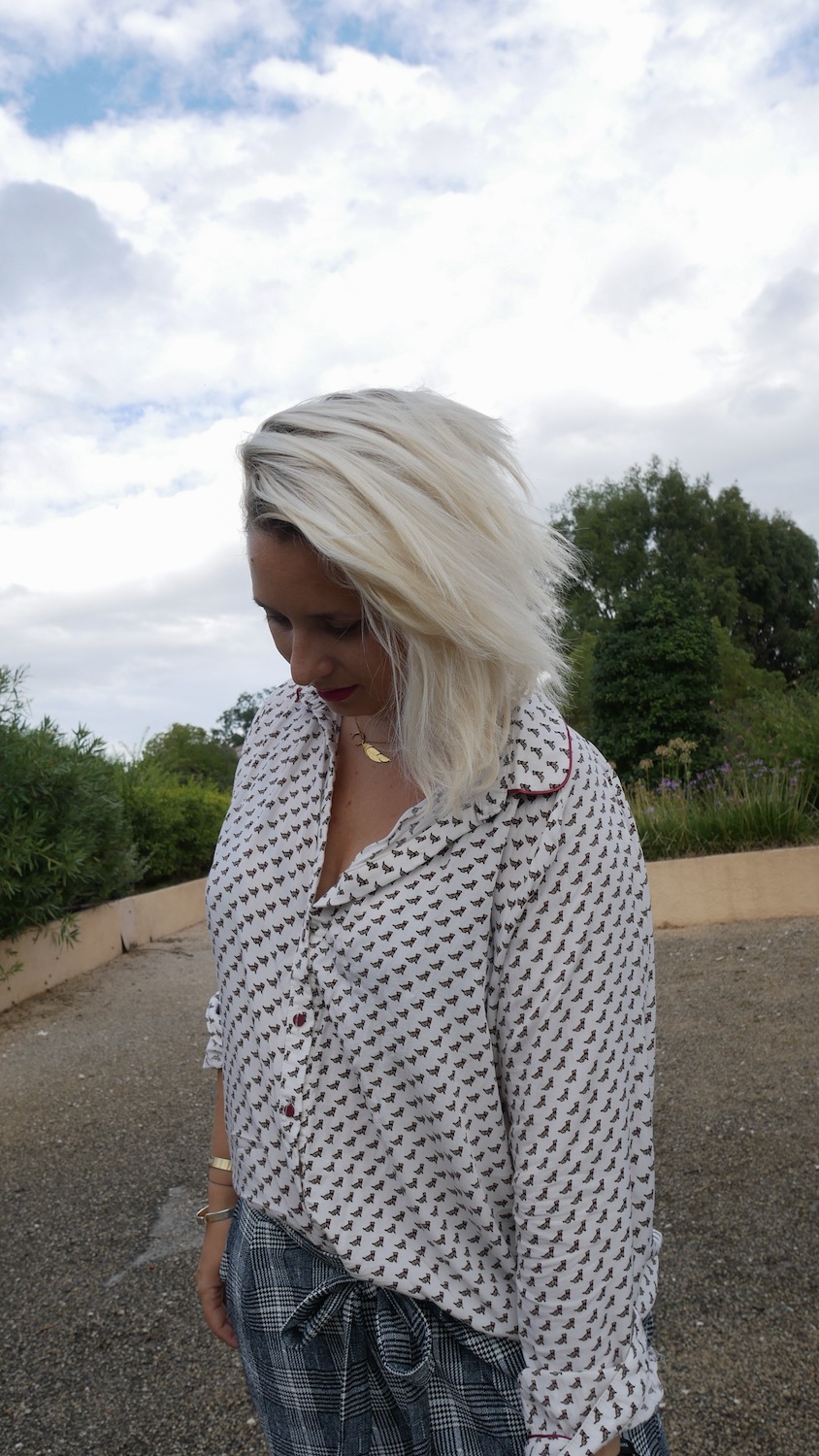 J’ai ainsi mis un chemisier Grace & Mila orné de petits chiens avec un pantalon à rayure Babou et des bottines python New Look. Un mix des genres qui pourtant s’accorde bien grâce notamment à des teintes communes et plutôt neutres.
