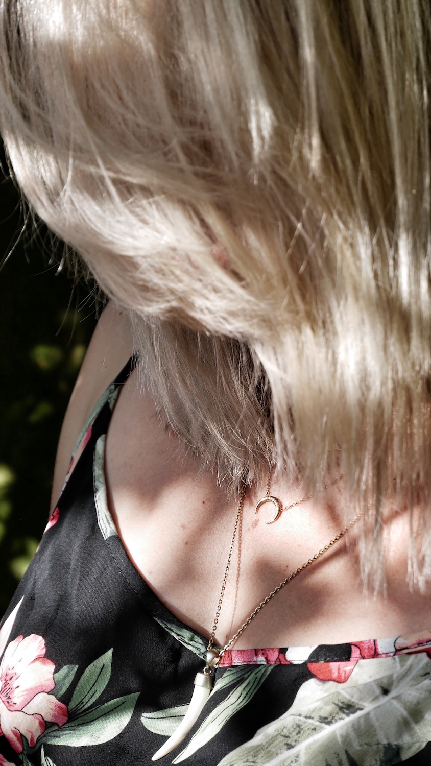 Combinaison Babou / Sandales et veste New Look / Collier corne Mistikipi / Collier demie lune Rêve de Bohème