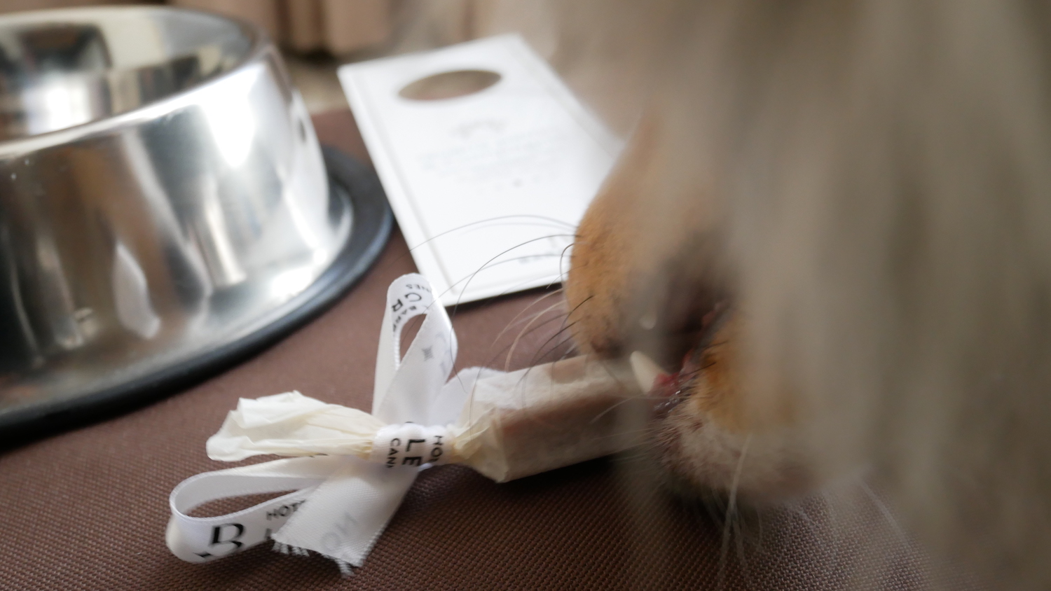 Nazca a été accueilli avec une friandise, une attention qu’il a tout particulièrement apprécié. Il s’est empressé de la dévorer avec satisfaction.