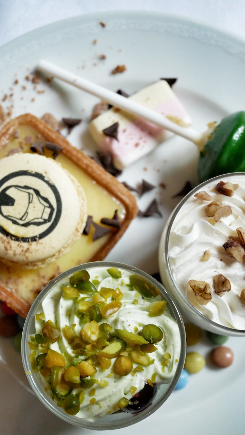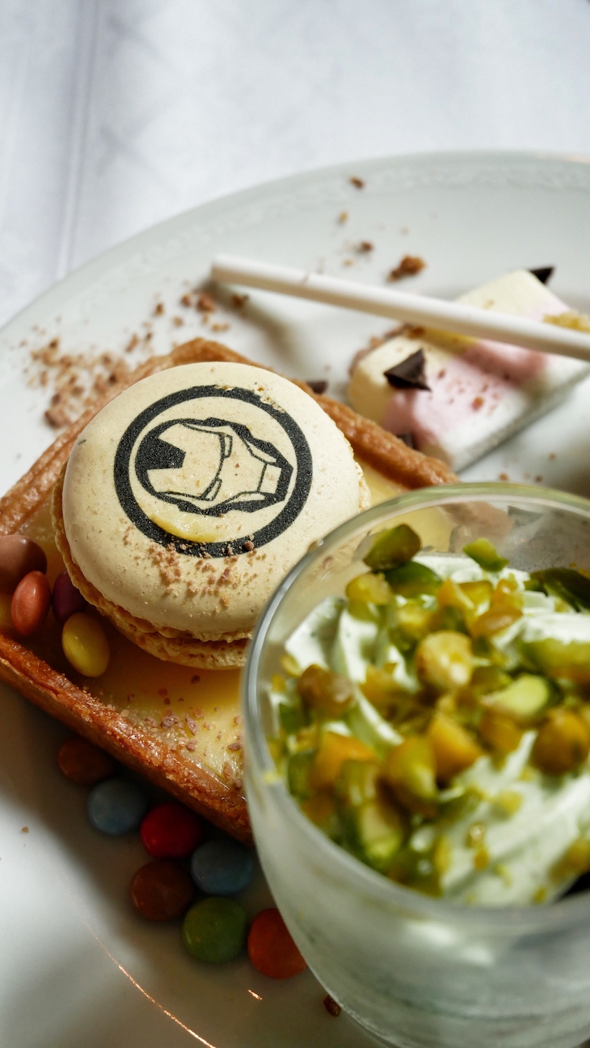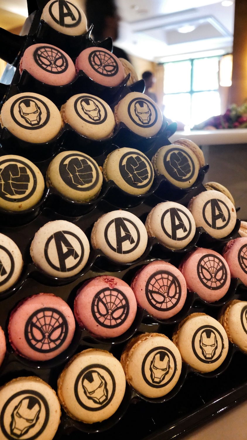Au déjeuner, le buffet personnalisé, nous a plongé à la fois dans l’Amérique de Marvel et les Super-Héros n’étaient jamais bien loin, qu’ils soient représentés sur les pâtisseries par exemple ou en “chair et en os” pour un session photo.