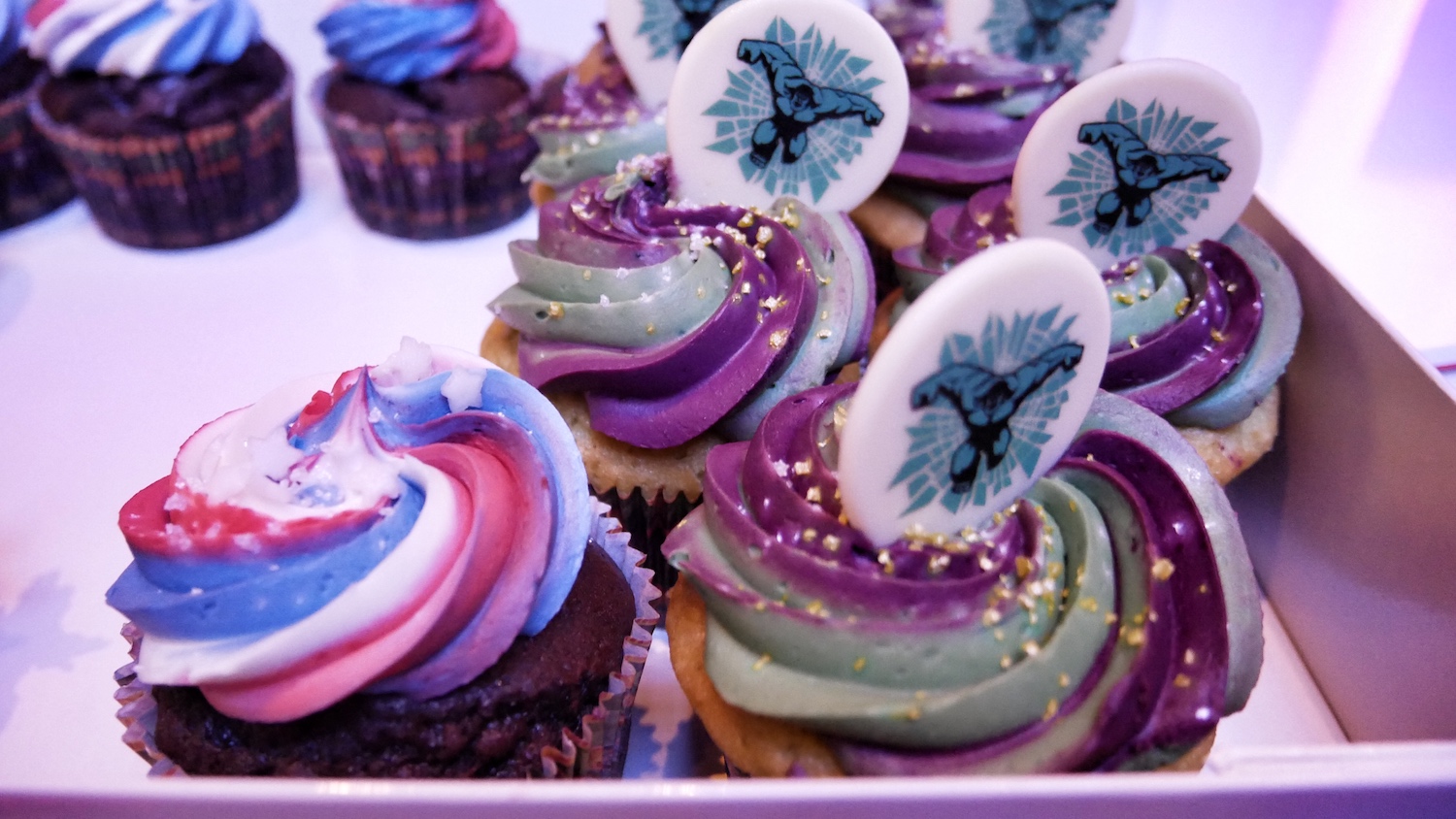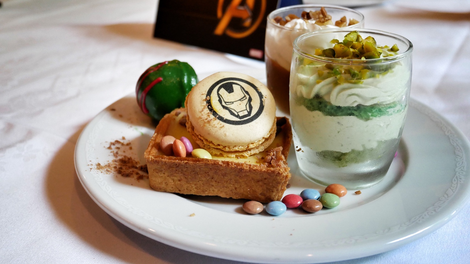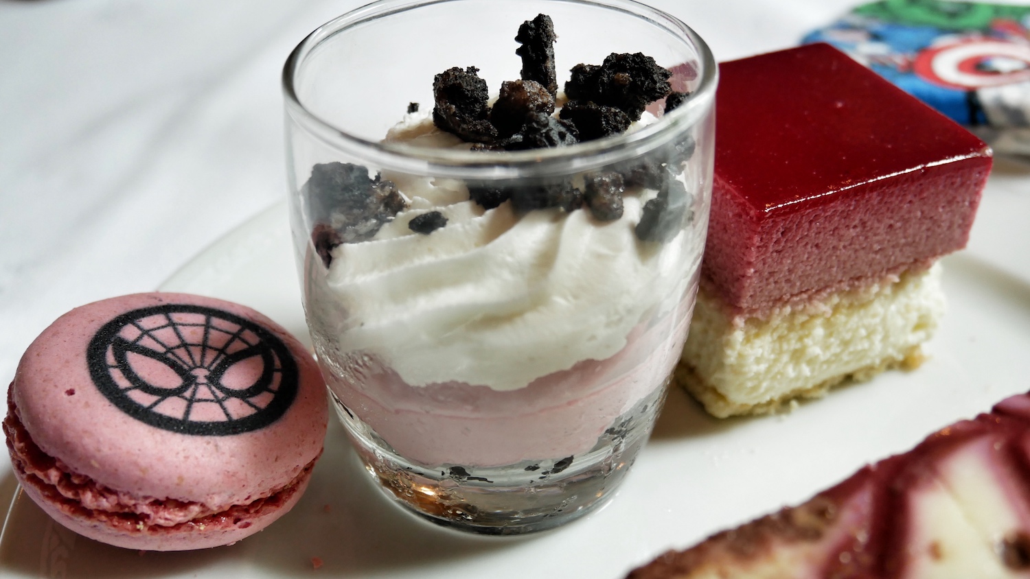 Au déjeuner, le buffet personnalisé, nous a plongé à la fois dans l’Amérique de Marvel et les Super-Héros n’étaient jamais bien loin, qu’ils soient représentés sur les pâtisseries par exemple ou en “chair et en os” pour un session photo.