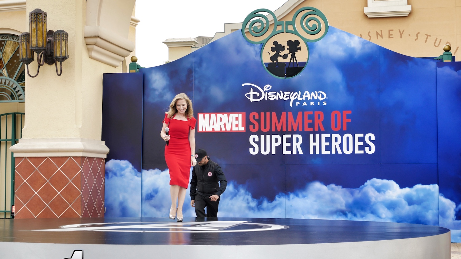 L’arrivée de Catherine Powell (présidente du groupe EuroDisney) dans une superbe voiture, des agents descendants d’un hélicoptère volant au dessus du parc…