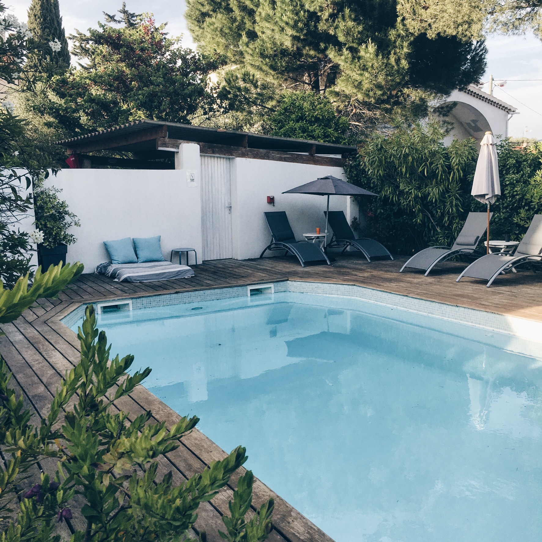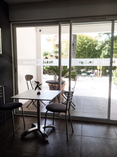 On est très loin des grandes chaînes d’hôtel sans âme, une dizaine de chambres dont certaines avec terrasse ou balcon, un joli petit jardin bien exposé et une piscine.