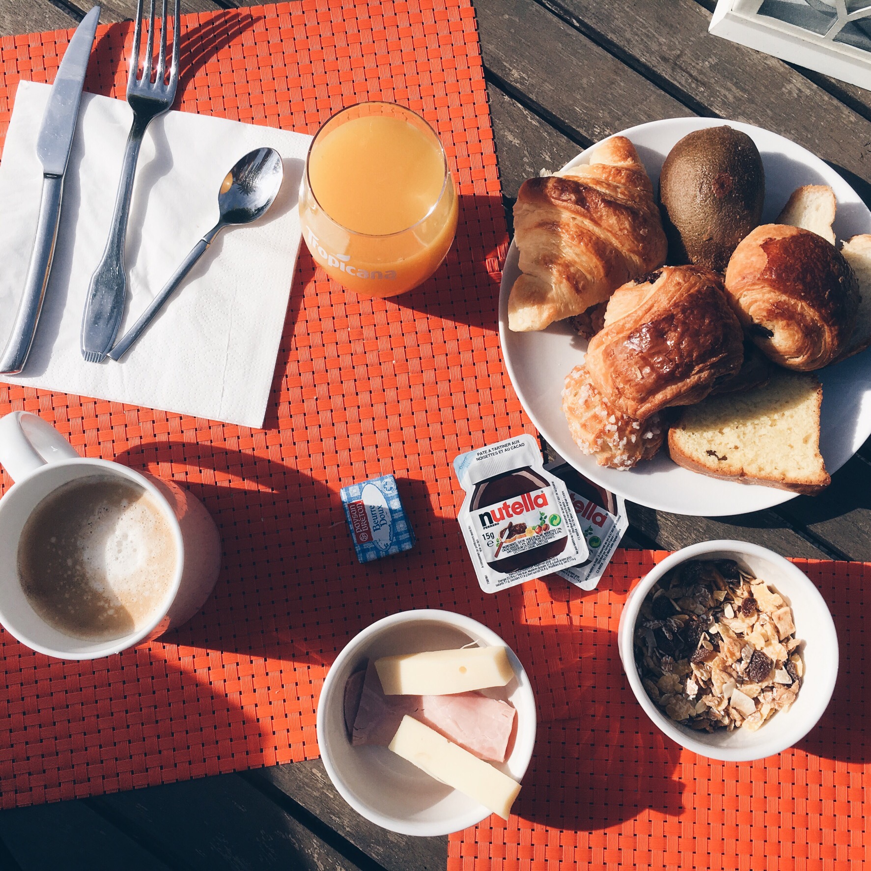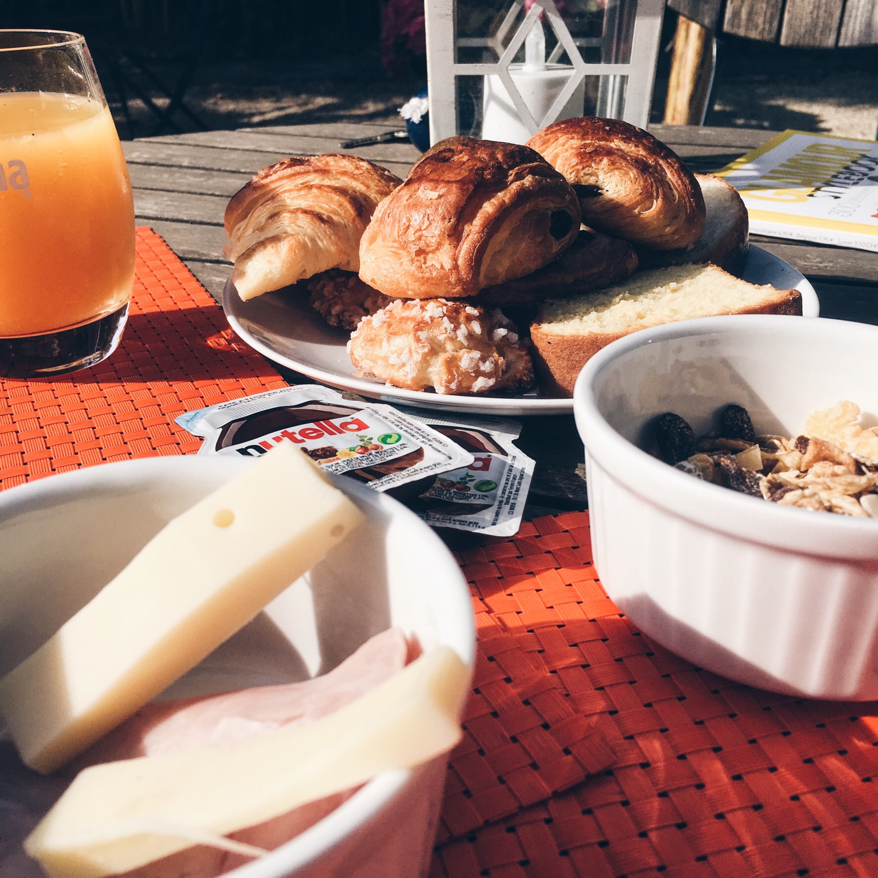 Le matin, nous avons pris notre petit déjeuner dans le petit jardin, sous le soleil et avec le bruit des oiseaux.