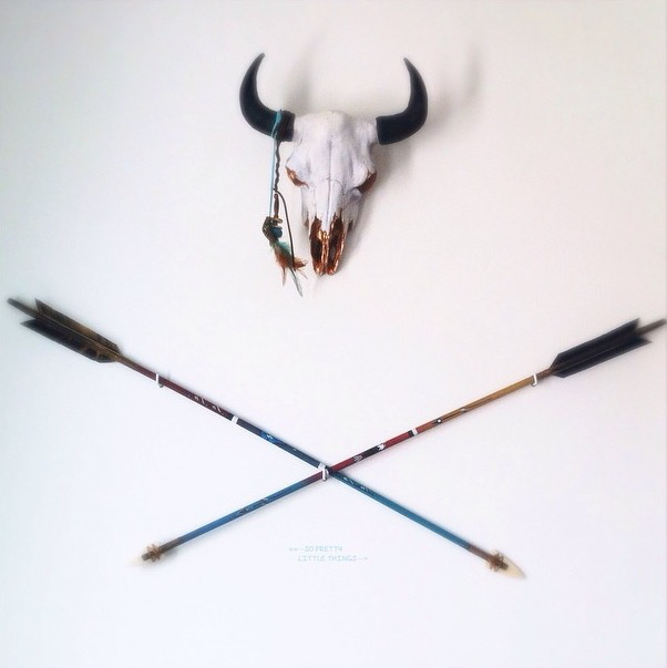 »» La décoration du salon prend forme avec ce crâne et ces magnifiques flèches.