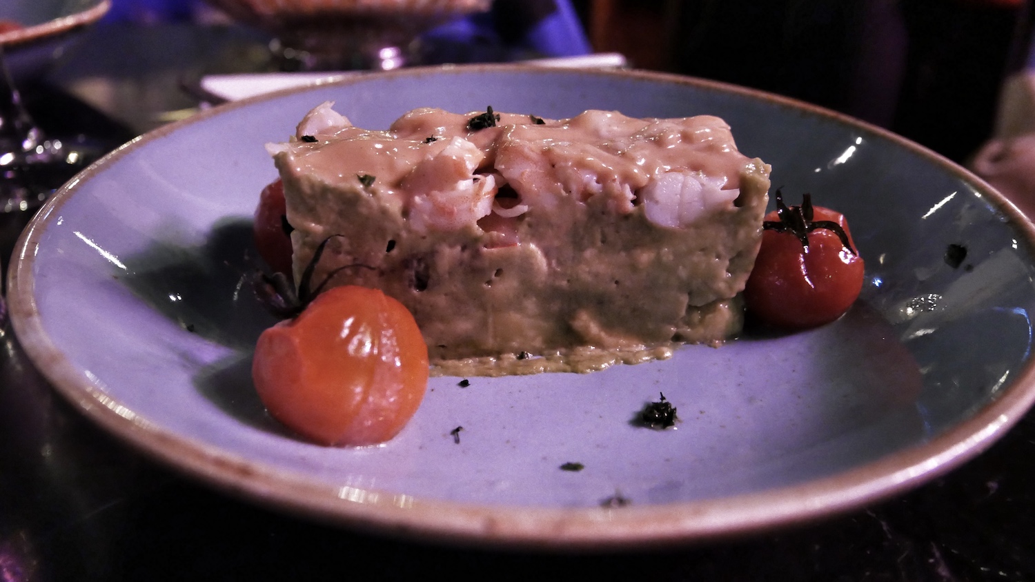 Nous avons pris en entrée le velouté de potimarron et châtaigne et ses mouillettes de pain d’épices ainsi que le tartare d’avocat aux grosses crevettes, sauce cocktail. Si le velouté était délicieux, le tartare était quand à lui exceptionnel, je le recommande les yeux fermés.