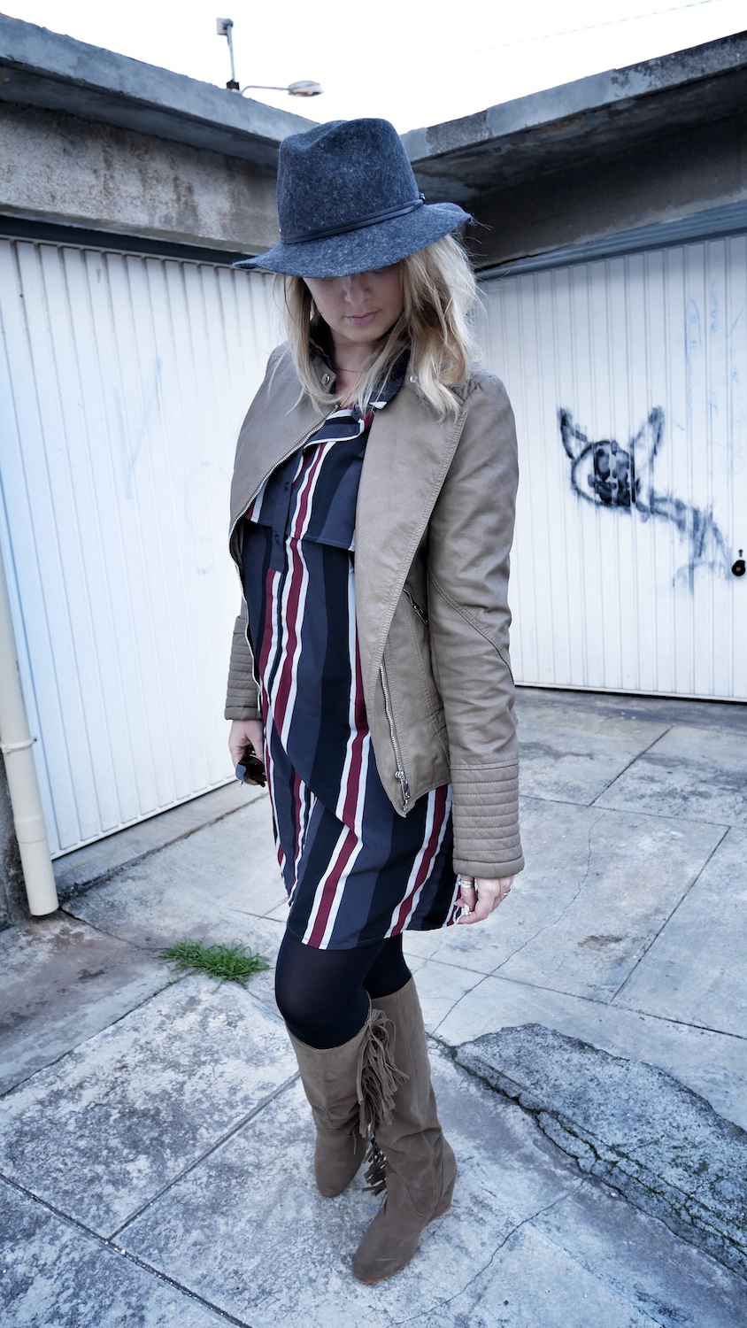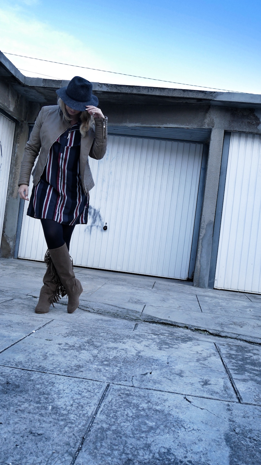 Robe Boohoo* / Veste Salsa* / Bottes Salsa* (en Soldes à 5€ ! au lieu de 18) / Chapeau Travaux en Cours