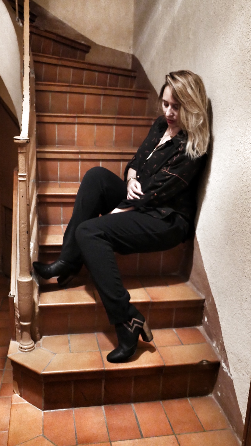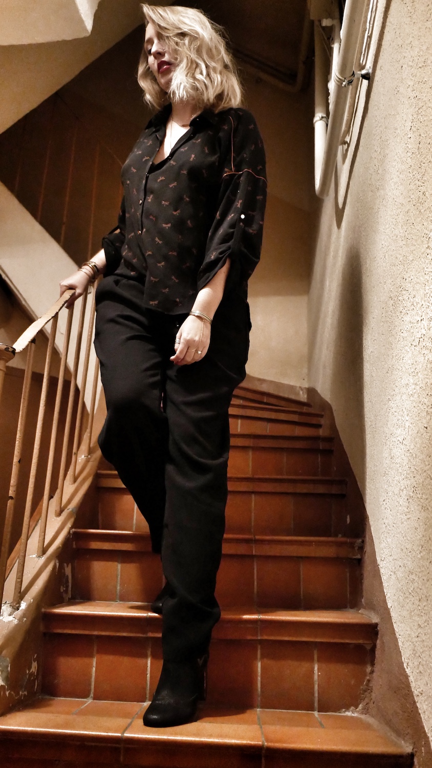 Chemisier et pantalon Cache Cache* / Bottines Vanessa Wu*