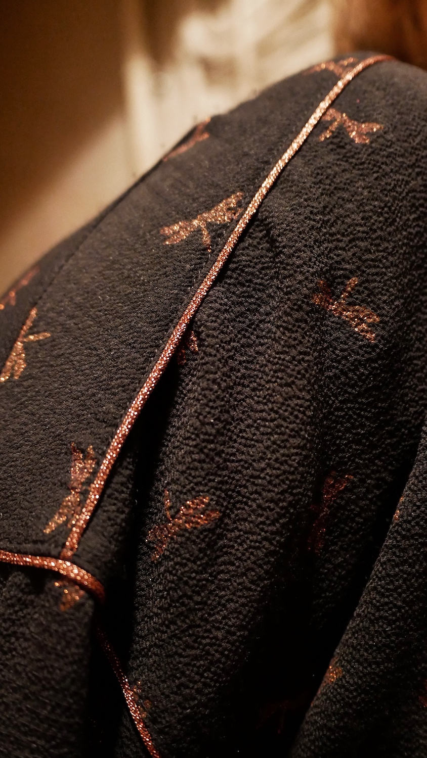 Comme celui-ci composé d’un pantalon et d’un chemisier Cache Cache. Très simple et s’adaptant à de nombreuses situations, l’imprimé cuivré du haut permet d’apporter une petit touche plus festive.