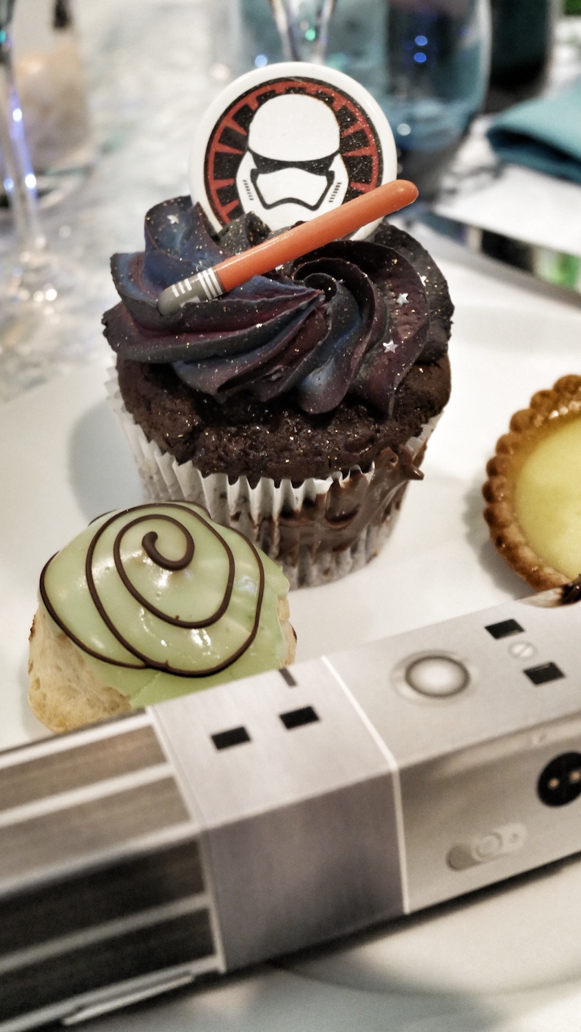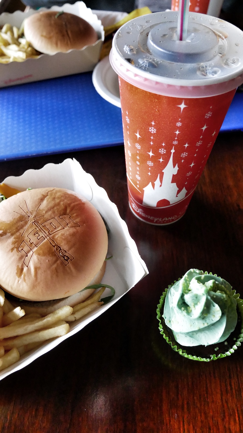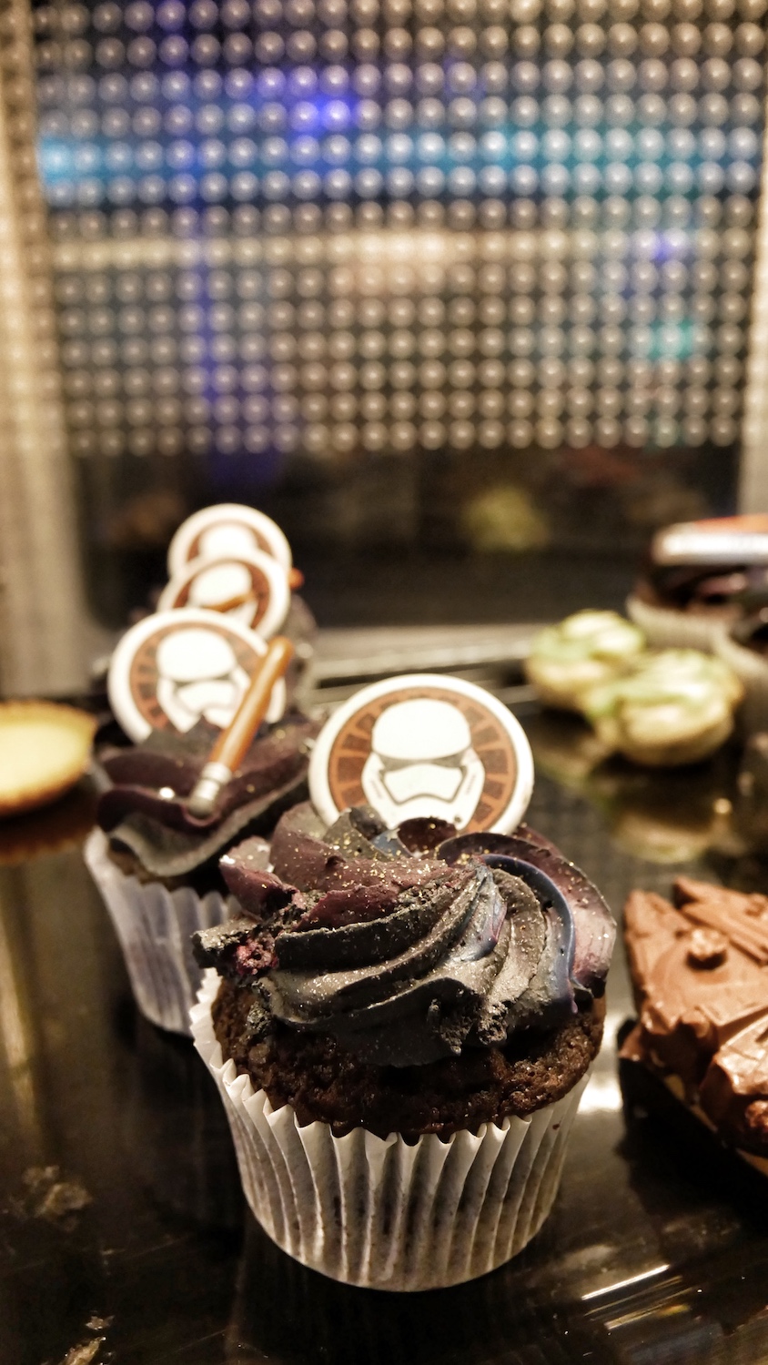 Pour vous restaurer tout en restant dans le thème, il y a le menu spécial Jedi avec un burger légèrement épicé et un délicieux cupcake au chocolat surmonté d’un topping aussi vert que Yoda. Nous avons dégusté tout cela au café Hypérion à Discoveryland. Une petite pause sympathique avant de repartir pour de nouvelles aventures.