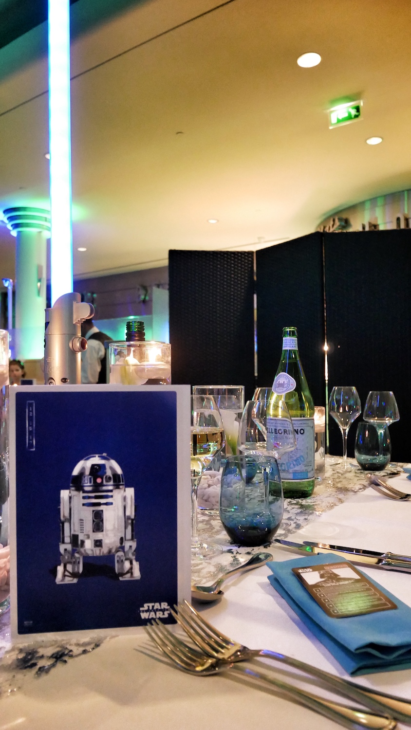 Comme nous étions convié pour découvrir la Saison de la Force, nous avons eu l’immense joie (et l’honneur) de participer à un diner incroyable tournant autour de Star Wars, avec une décoration vraiment dingue.