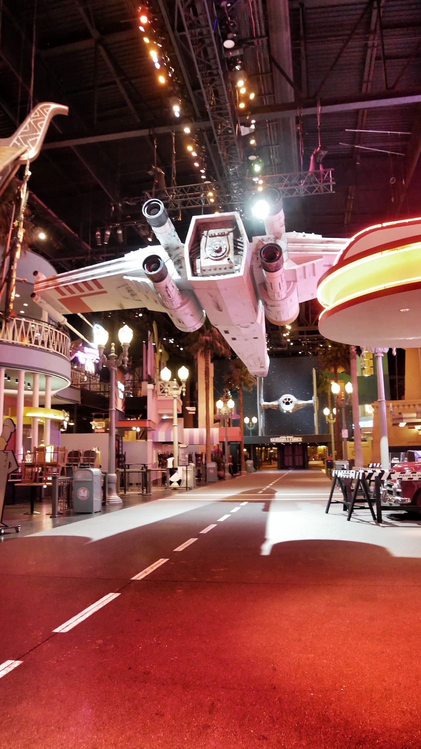 Au Disney Studio, le ton est de suite donné. Deux grands vaisseaux (X-wing starfighter et TIE fighter) entièrement crées par le club de fans la 501e Légion nous accueillent fièrement, et d’autres sont à découvrir un peu partout à l’intérieur du Parc.