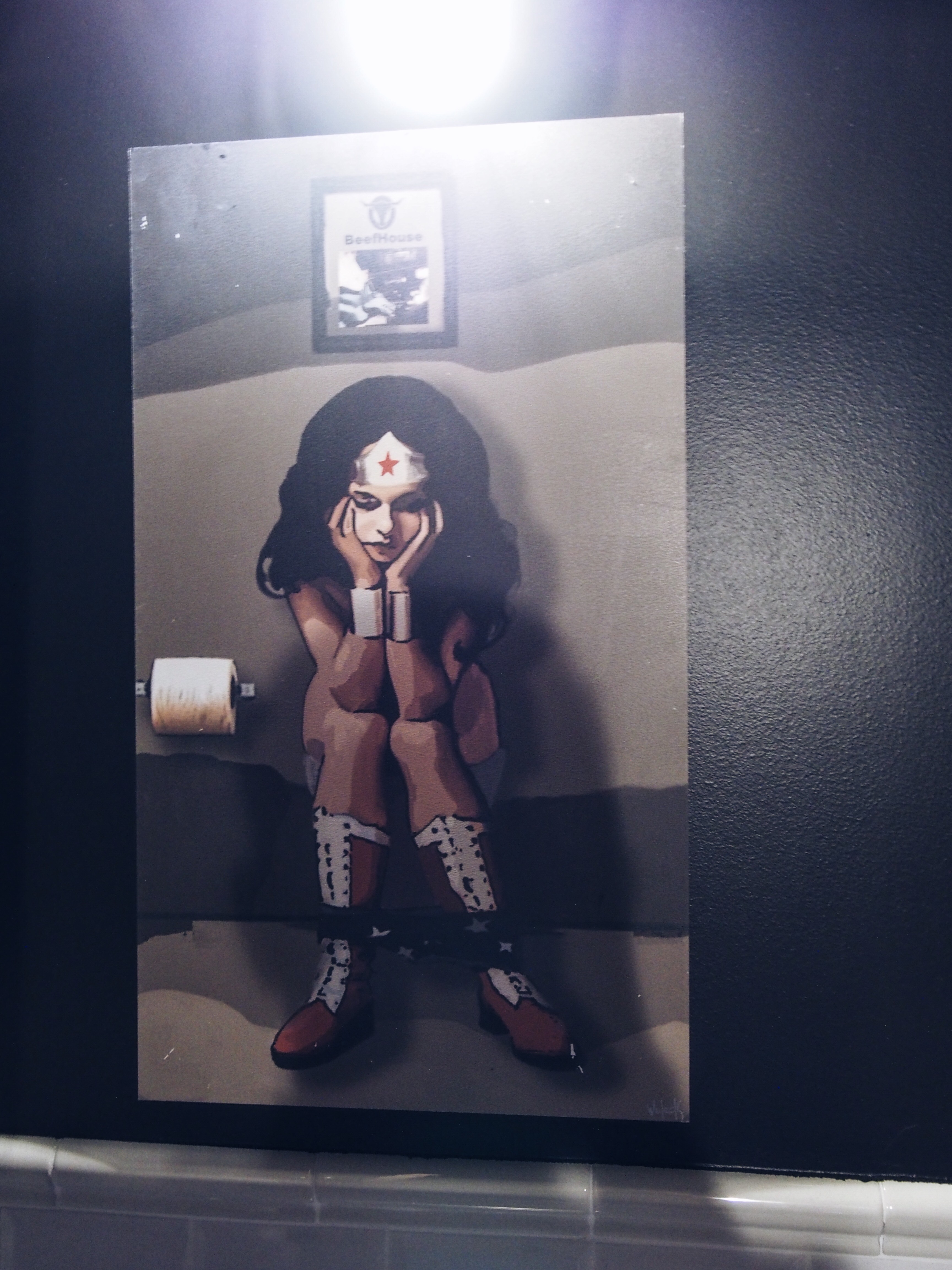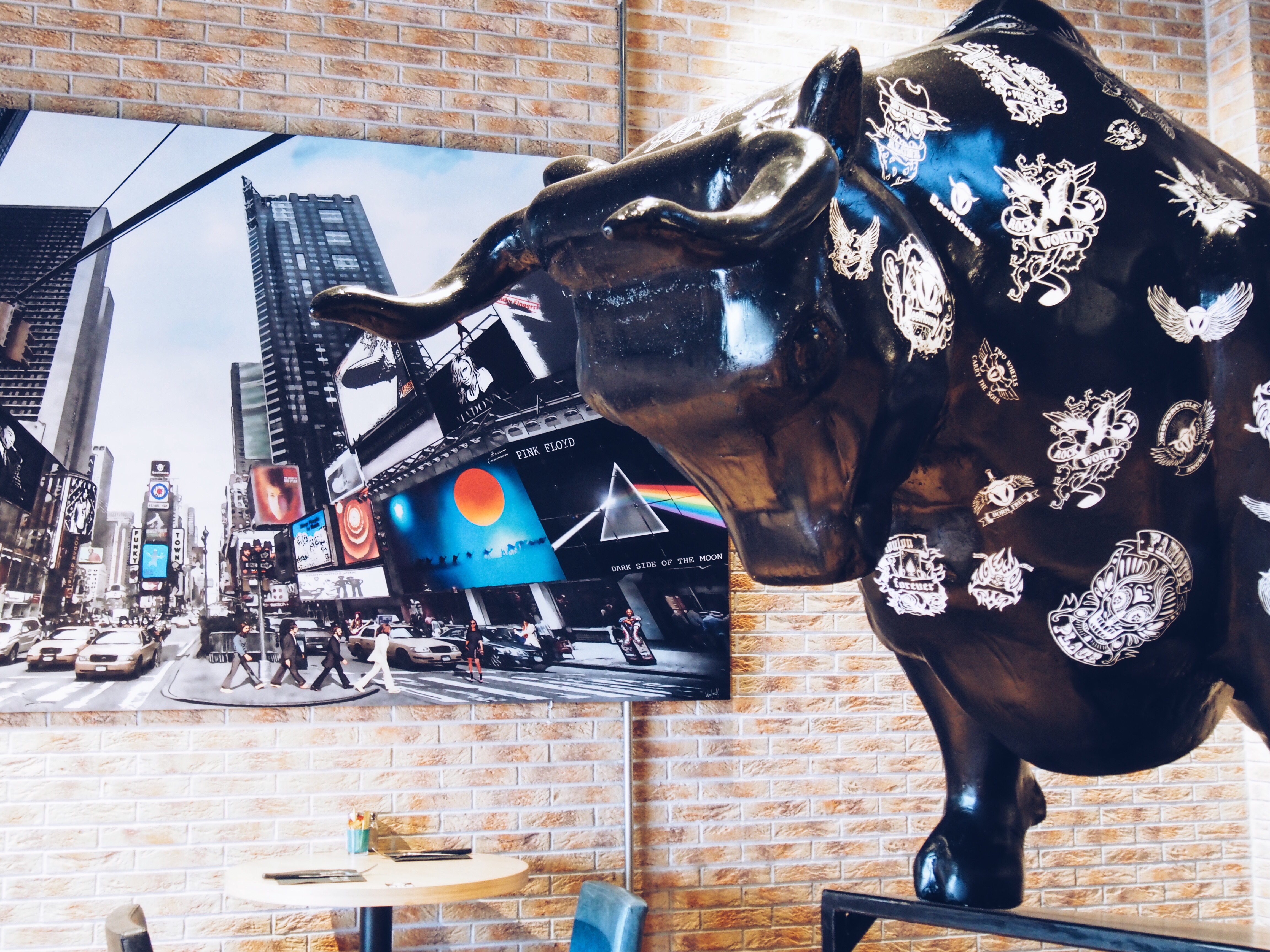 Ce que j’ai apprécié en entrant chez Beef House, c’est la déco type industrielle d’inspiration new-yorkaise, et la mise en avant d’un artiste français, Richard Woleck, qui au travers de ses oeuvres apportent une touche d’originalité au lieu.