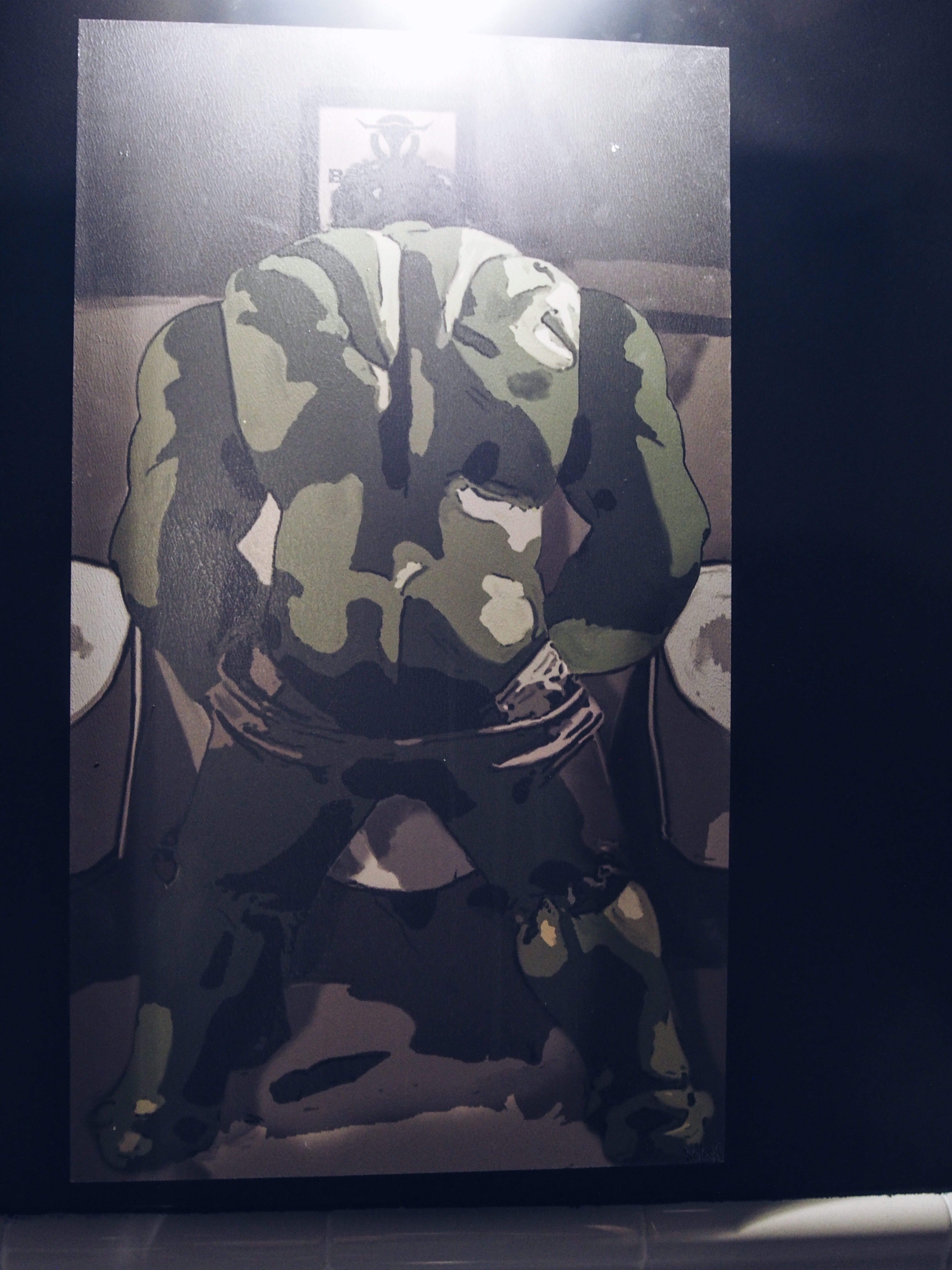 Nous avons eu un coup de coeur pour plusieurs de ses tableaux comme celui reprenant La Cène de Léonard de Vinci et y ajoutant tout un tas de détails de la culture populaire, mais également pour ceux de Super Héros Marvel se trouvant dans les toilettes.