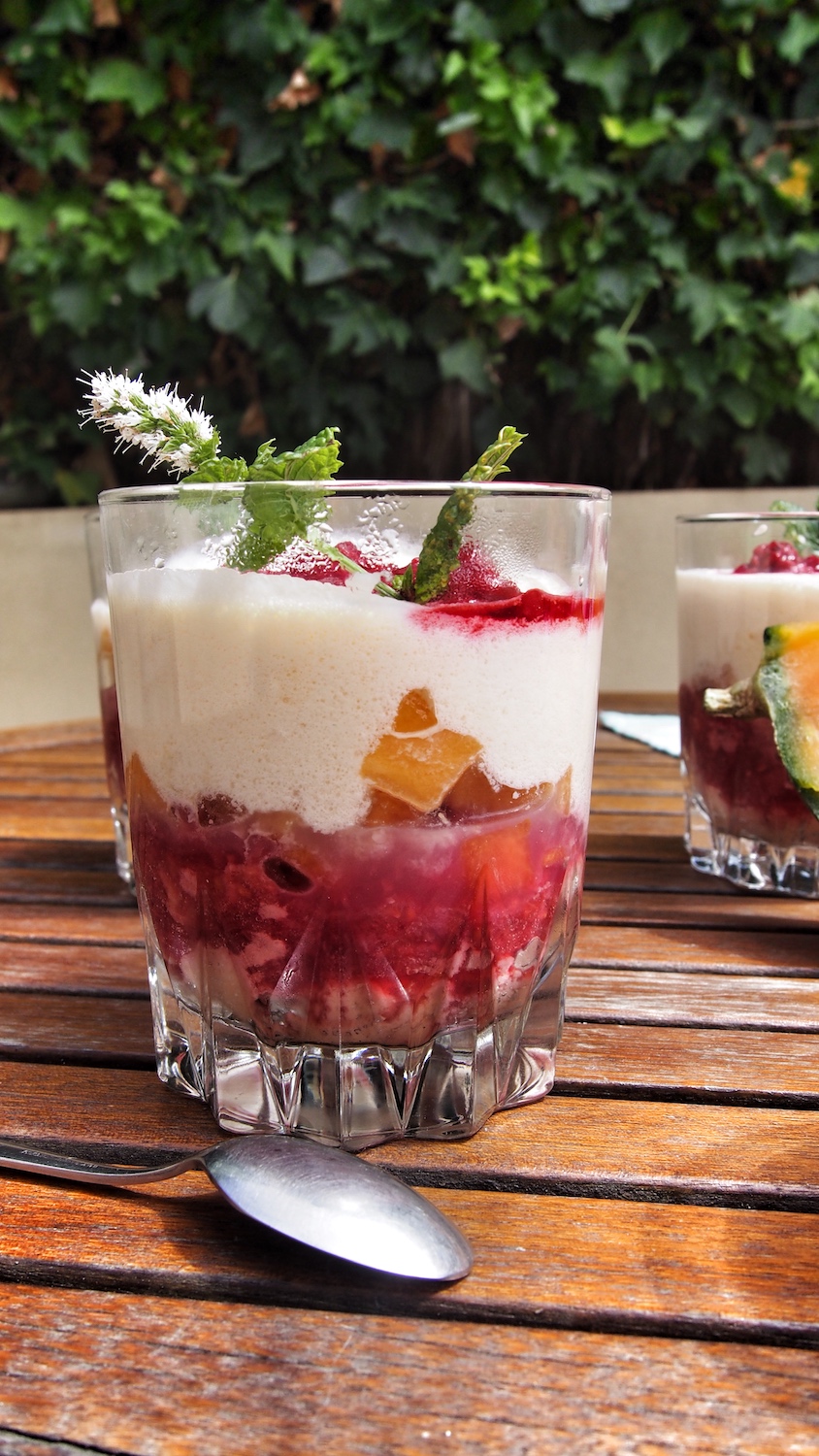 Je dois avouer que j’ai un petit faible pour ce dessert dans sa version fruitée, j’ai donc eu envie de m’amuser avec de nouvelles saveurs. C’est sur le melon et la framboise que j’ai jeté mon dévolu, pour le côté sucré et acidulé que donne ce mariage.