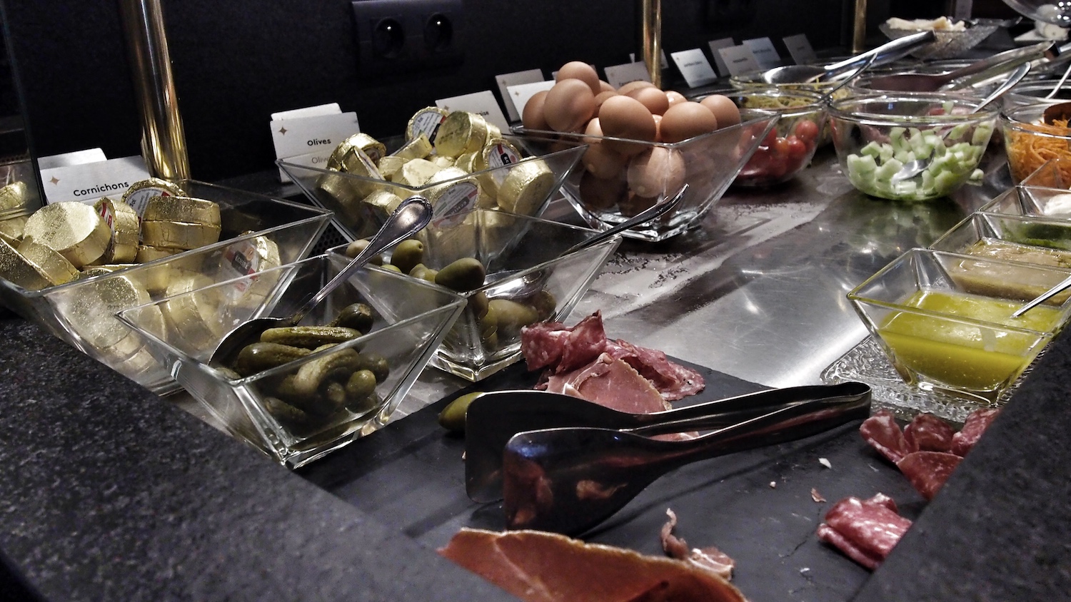 Au Fouquet’s on trouve un énorme buffet salé et sucré ! Céréales, viennoiseries, oeufs, gaufres, madeleine sans gluten, fromage et même un buffet spécial tous petits… Il y a vraiment de quoi faire un festin.