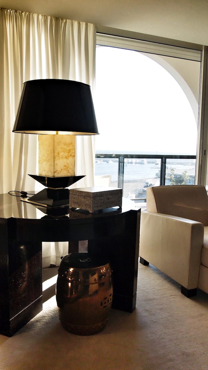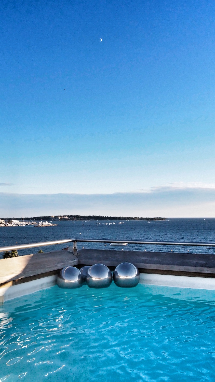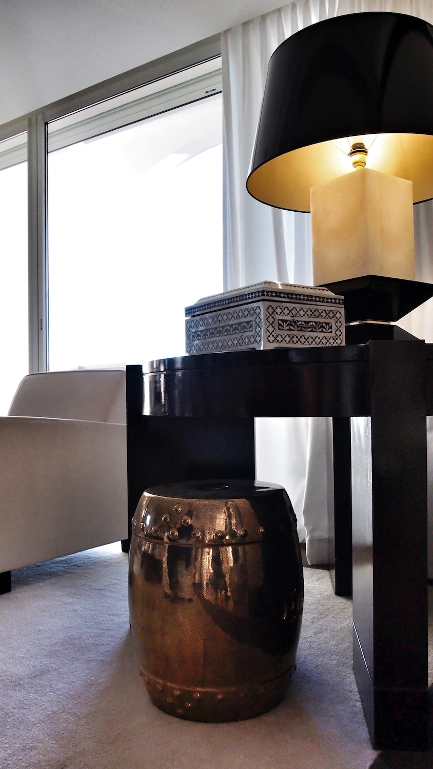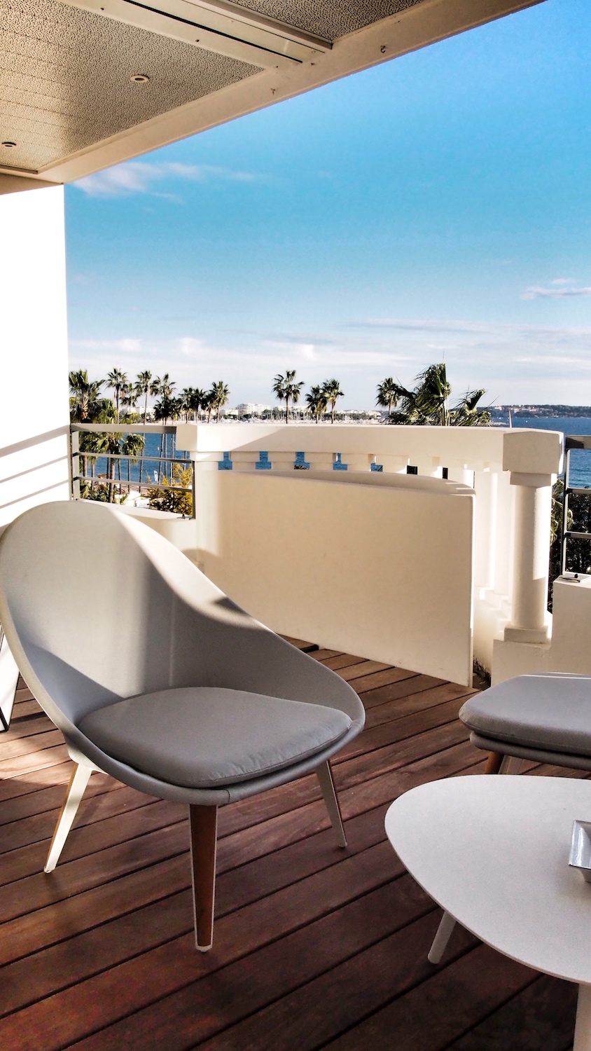 Je n’ai pas eu d’affinité avec le décor très chic mais que je trouve assez froid. Je pense qu’il plaira d’avantage aux hommes de part sa sobriété et ses nombreuses touches de noir. En revanche j’ai été subjuguée par la terrasse qui offre une vue tout simplement à couper le souffle sur Cannes.