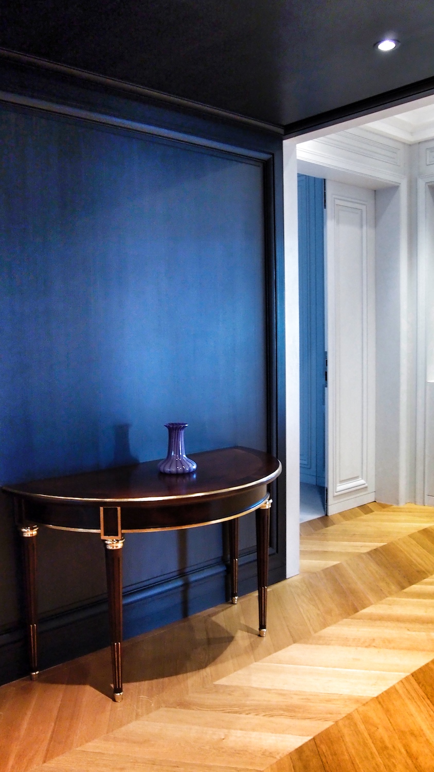 Le décor imaginé par Chantal Peyrat est empreint de douceur et d’élégance. On s’y sent vraiment bien, les teintes et les matériaux choisis apportent beaucoup de chaleur à cette suite de 180m².