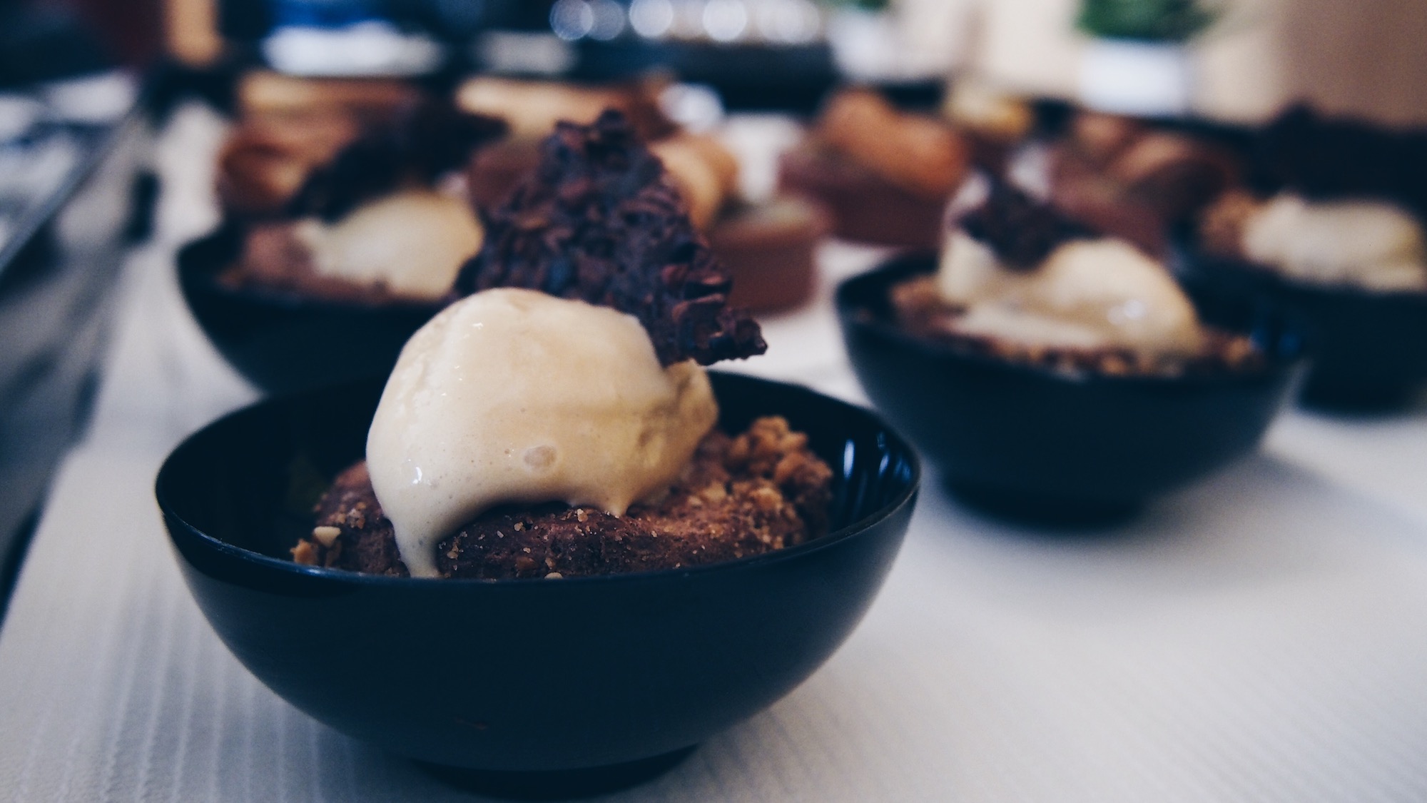 Coté dessert : Fruits exotiques en nage relevée à la citronnelle, forêt noire, mangue comme une omelette norvégienne revisitée, banane et chocolat en tartelette, poire en charlotte au chocolat et piment d’Espelette. …