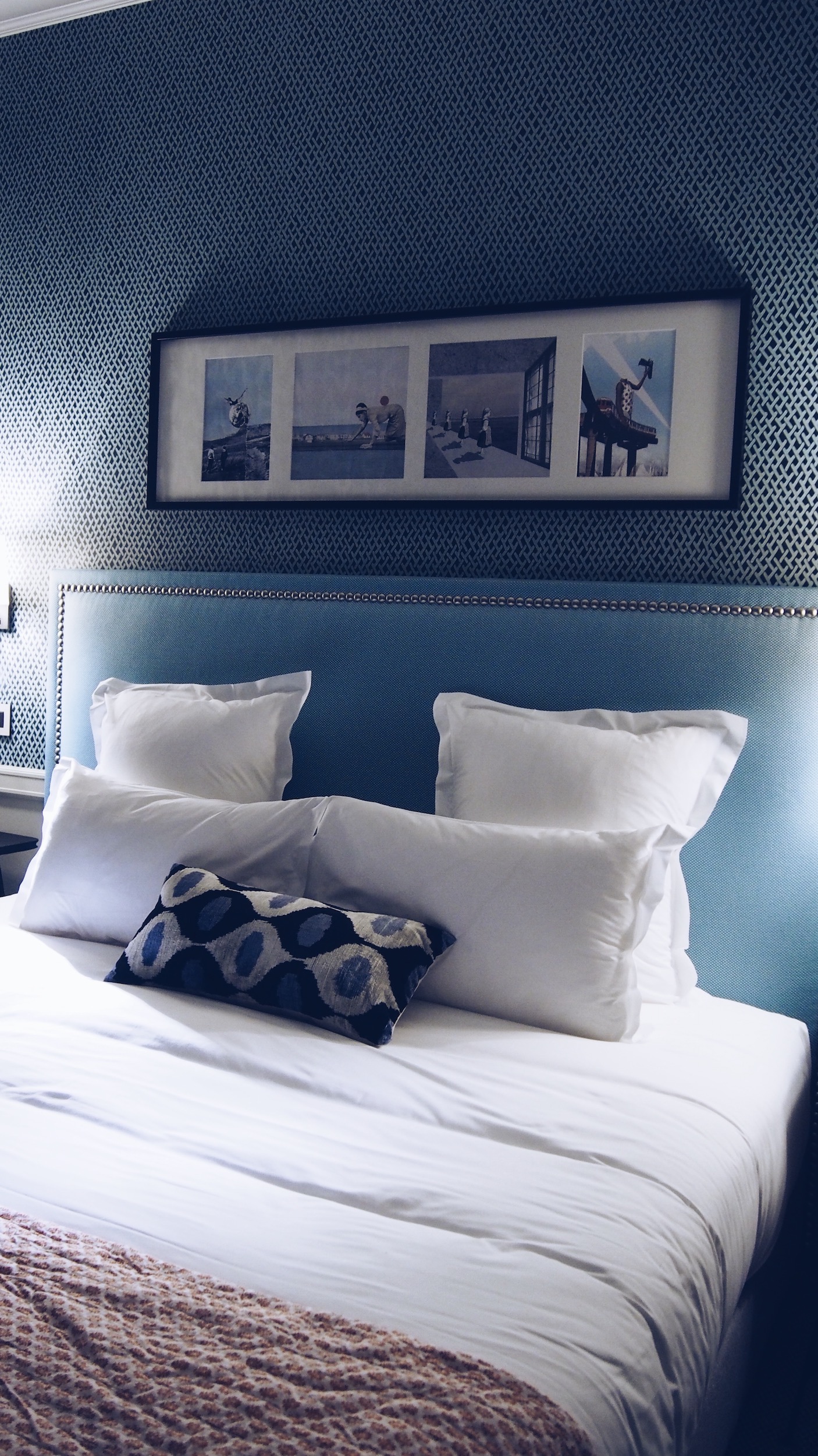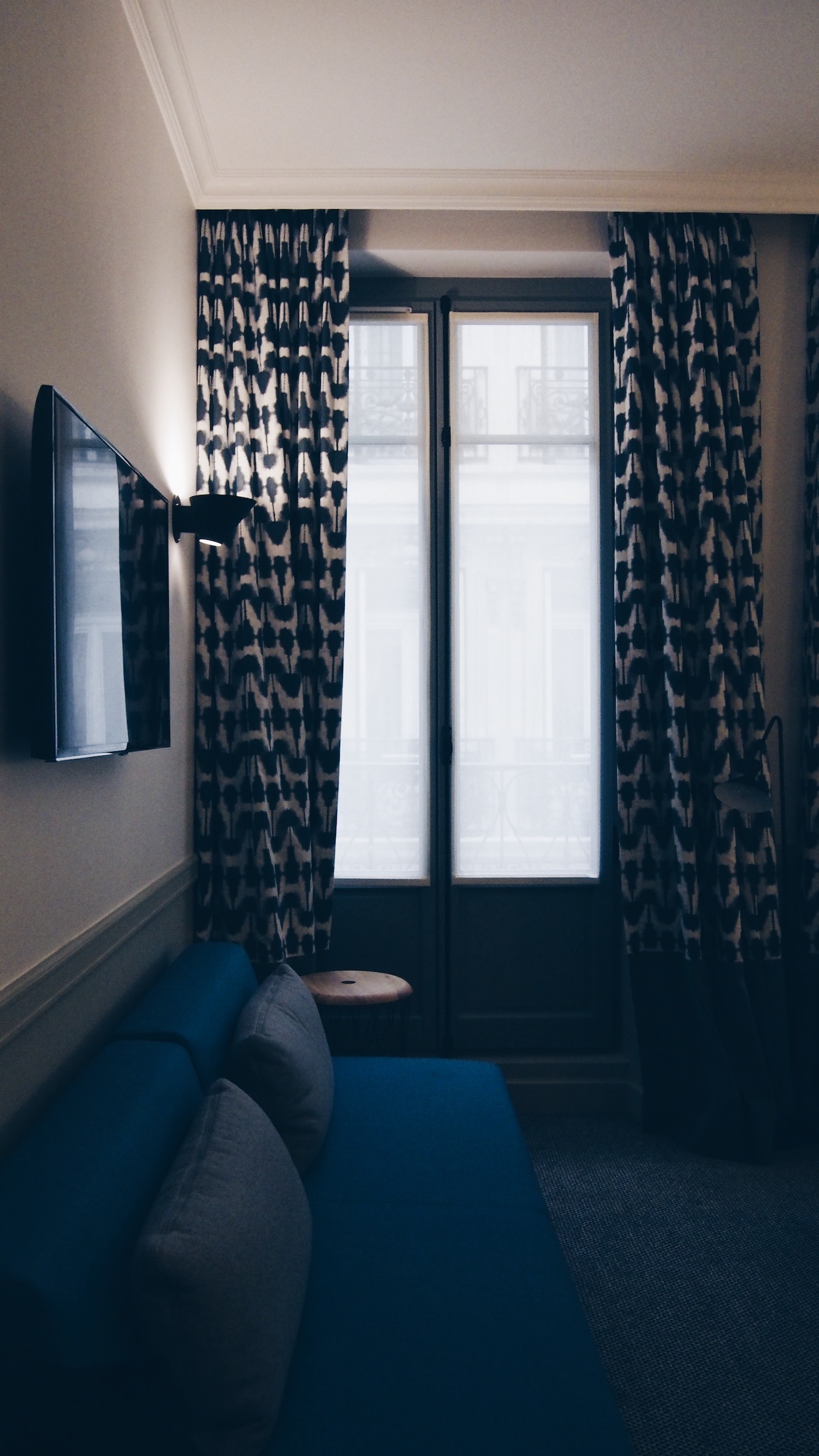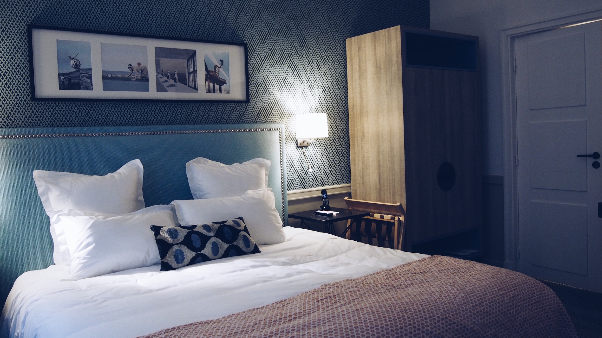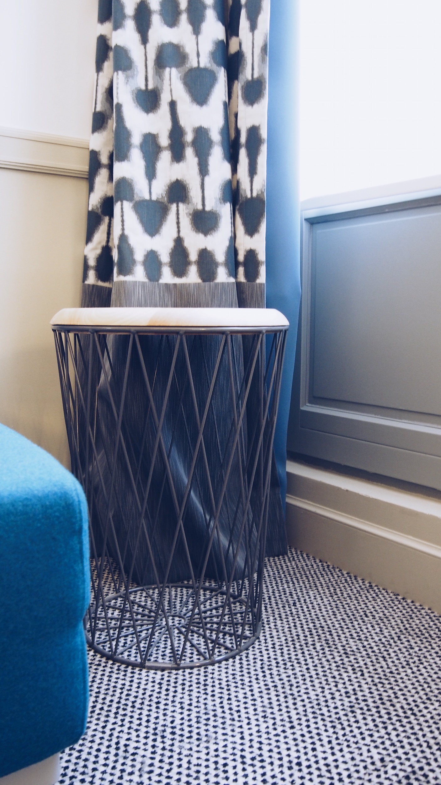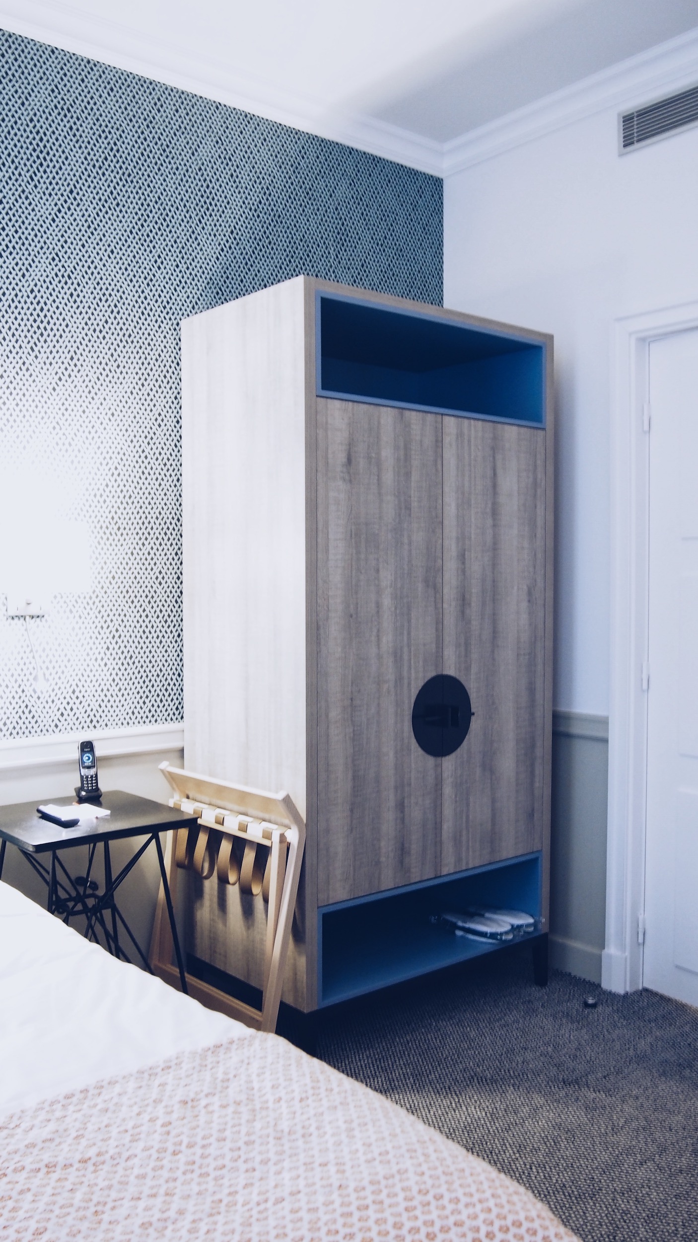 J’ai beaucoup aimé la chambre, son mobilier et ses teintes de bleus réchauffées par des touches de brun et de bois. Un subtil mélange de modernité et d’authenticité.