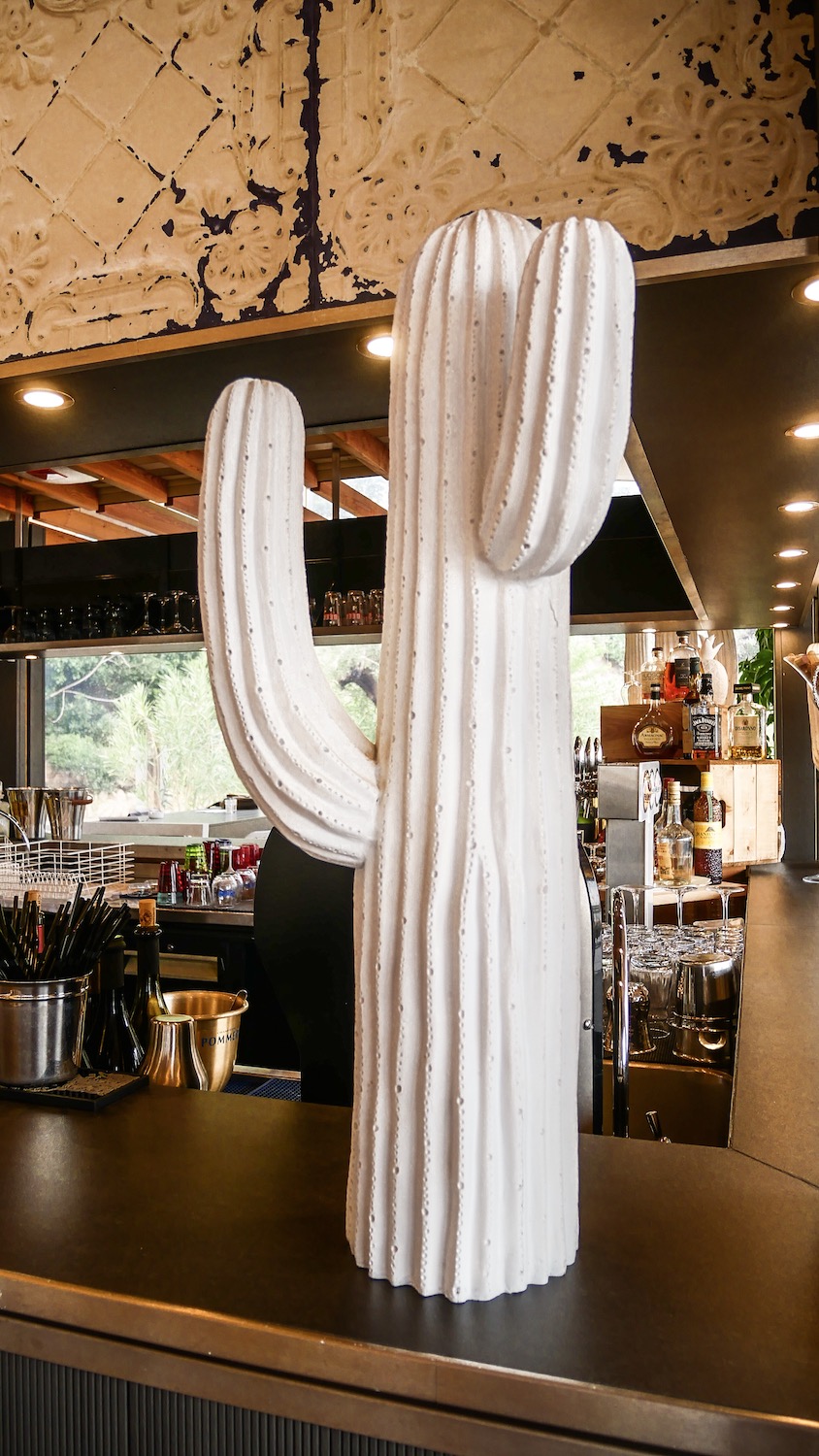 Après ce cours de cuisine dès plus interessant, nous nous sommes attablés face à la plage sur la terrasse couverte à la décoration bohème.