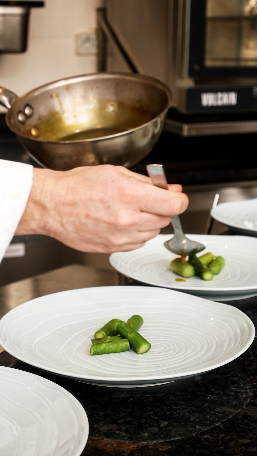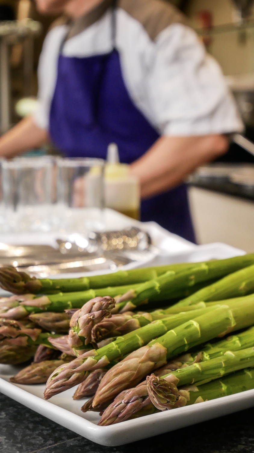 Le mois dernier, nous étions invité à un cours dans les cuisines du Magellan, afin d’apprendre à préparer l’asperge, ce légume typique du printemps. Un très joli moment et un régal pour les papilles. C’était aussi l’occasion de profiter de l’expérience du chef et de ses petites astuces afin de reproduire les recettes une fois rentré.