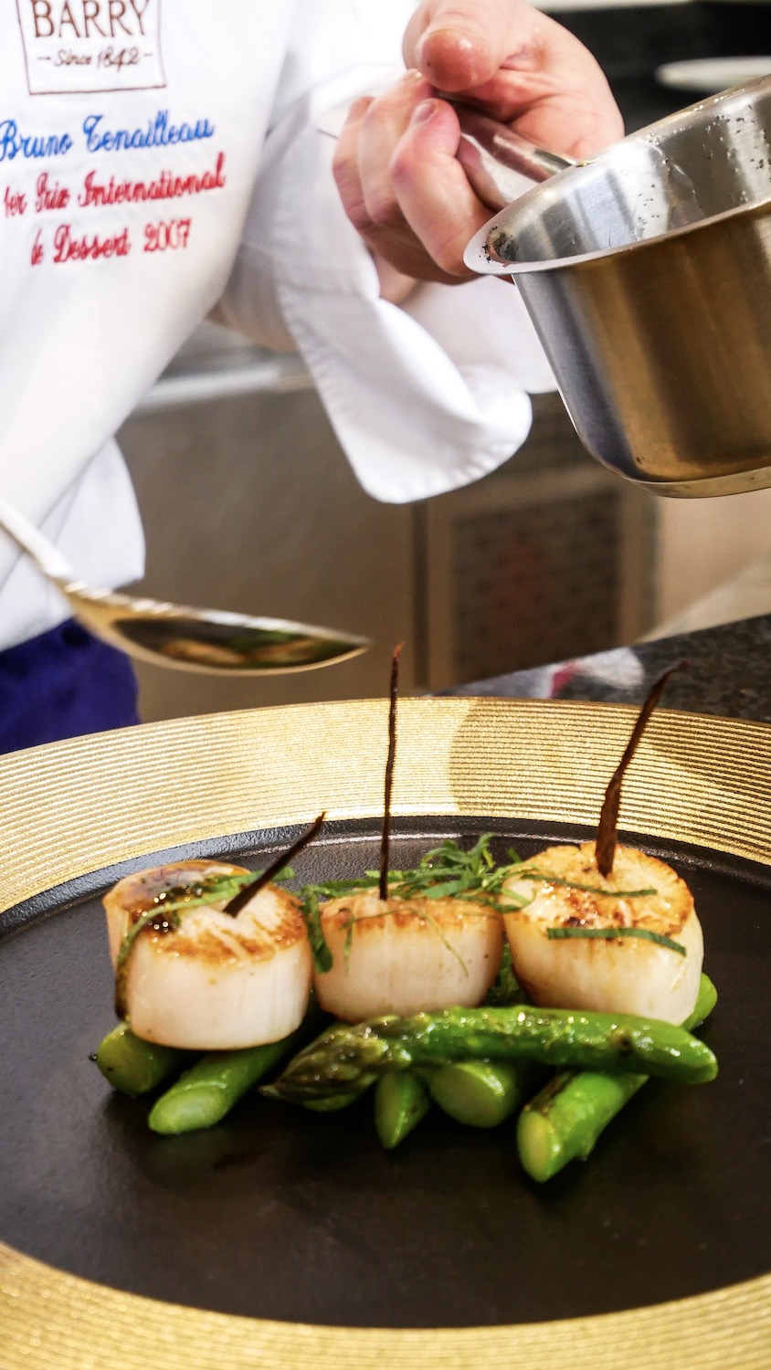 Ne pas oublier également l’accord noix de Saint-Jacques/asperges qui s’harmonisent à merveille.
